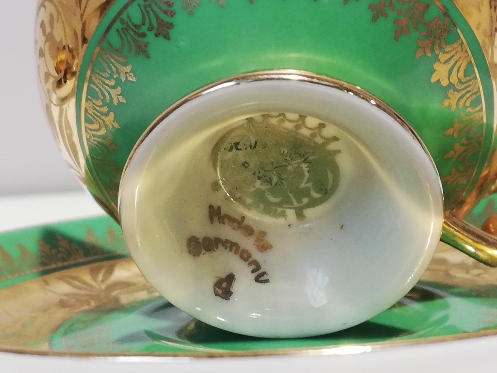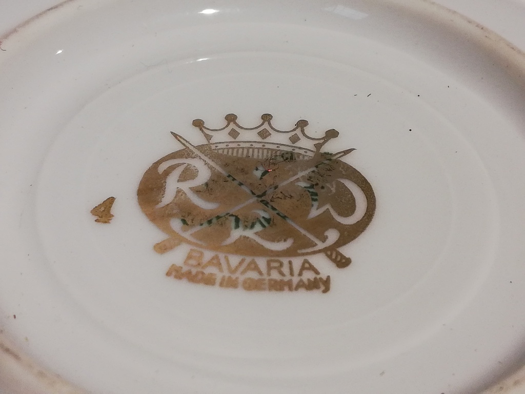 Rückseite unterglasur Marke der Porzellanfabrik ,, Johann Haviland darauf in Aufglasurgold gedruckt, Bavaria bekrönte Marke mit ,, RWR ," ,,Made in Germany ,,