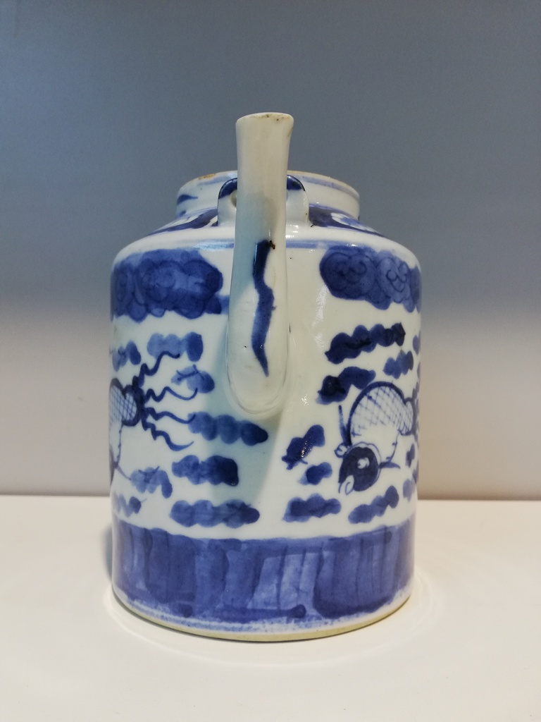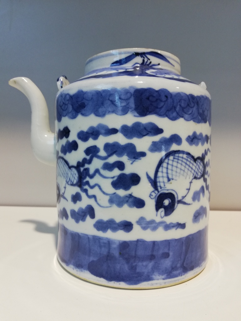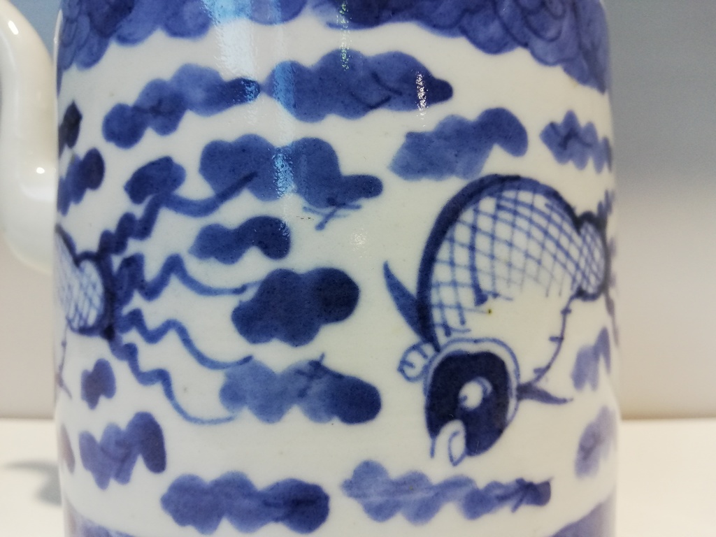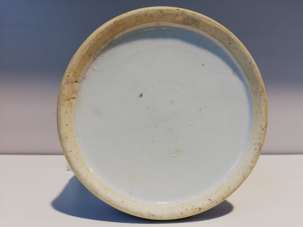 19.Jhdt. baue Malerei mit Fischen, links und rechts vom Rand Lasche mit 2 Löchern evtl. zum Aufhängen oder Befestige des Deckels