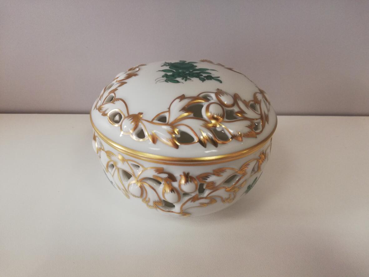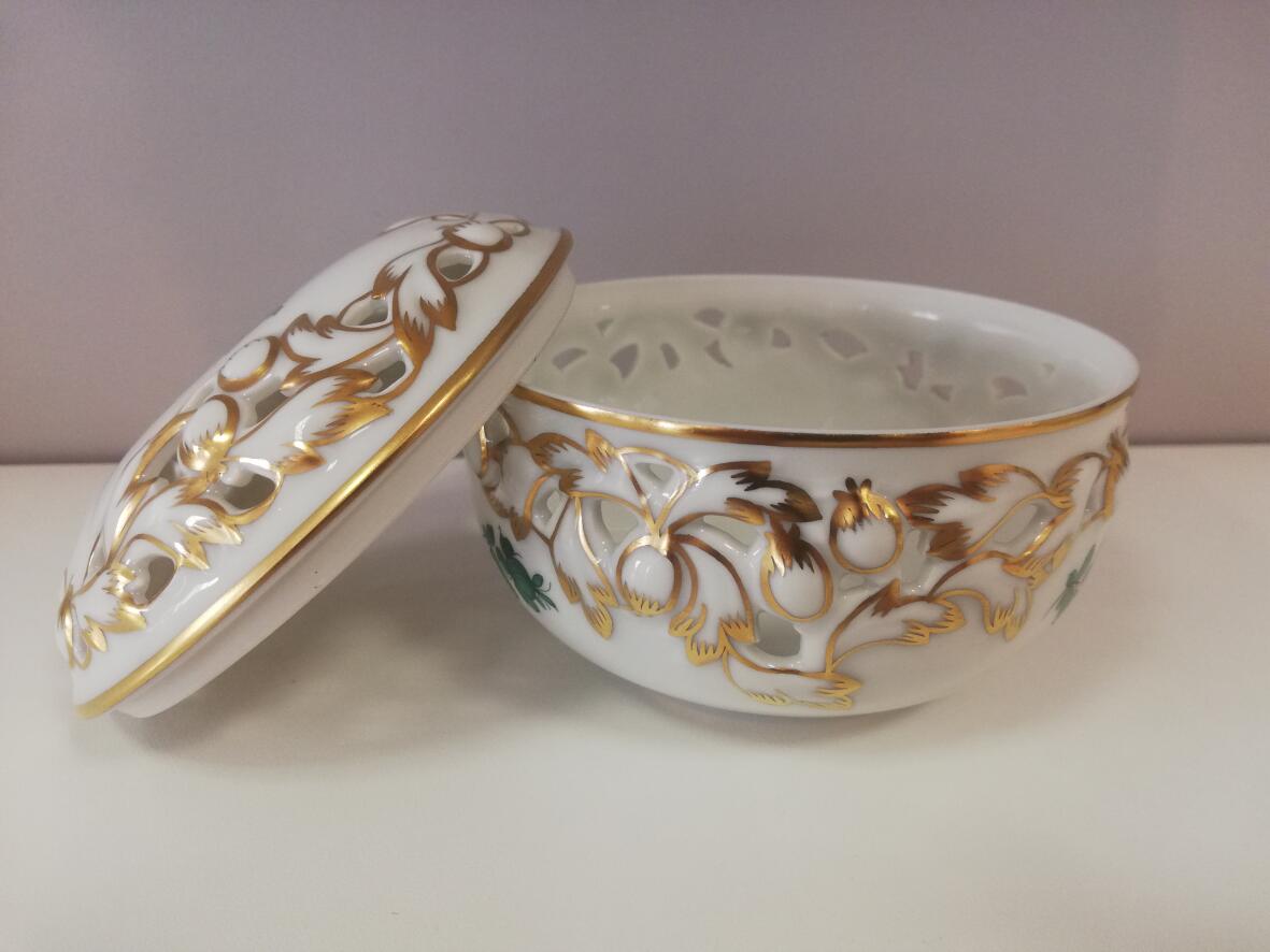 20. Jhdt. runde durchbrochener Deckel, runde durchbrochene Wandung, poliervergoldung ,