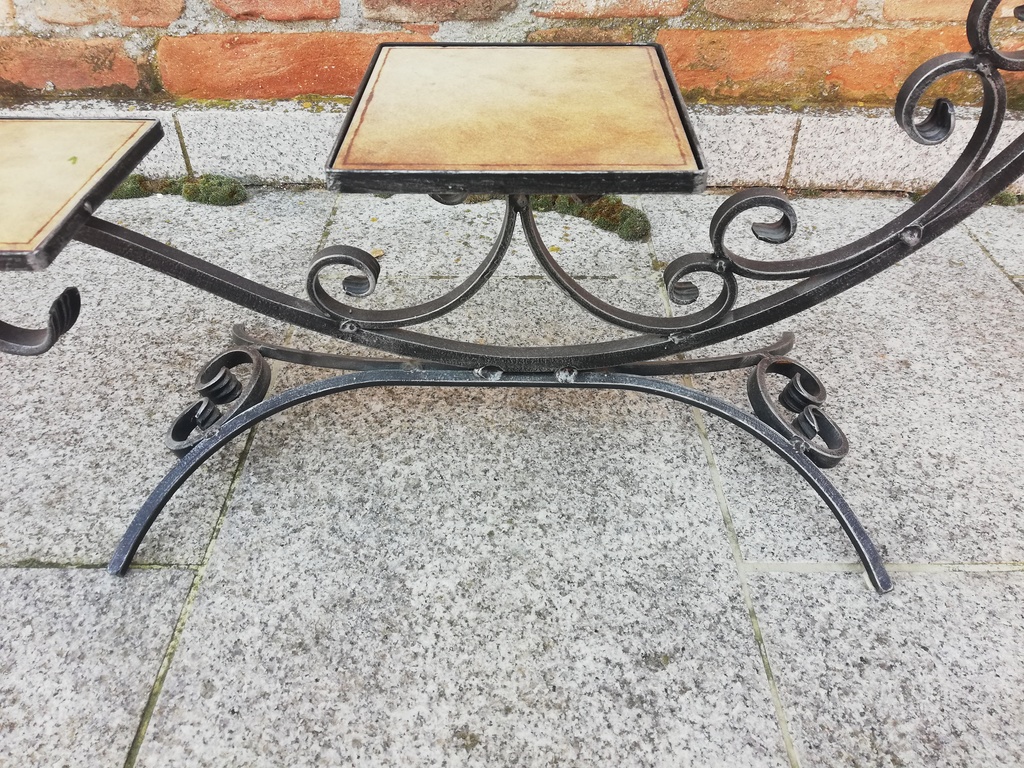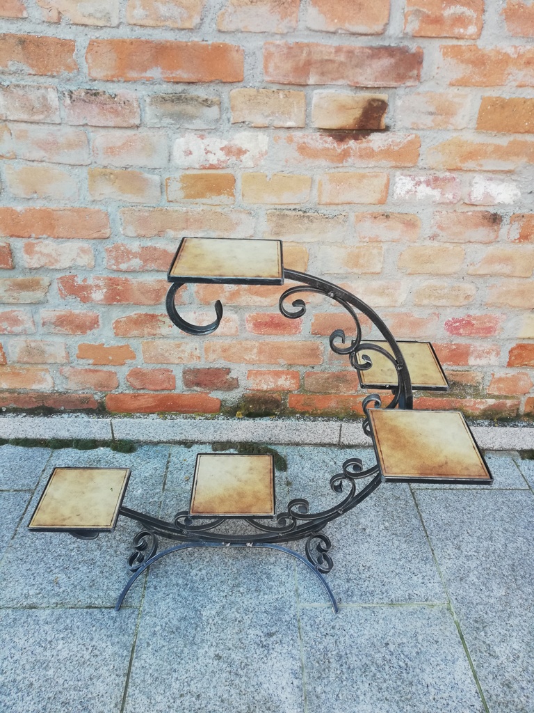 20.Jhdt. Blumenständer, Schmiedeeisen, 5 Ablagen für Blumen auf Fliesen