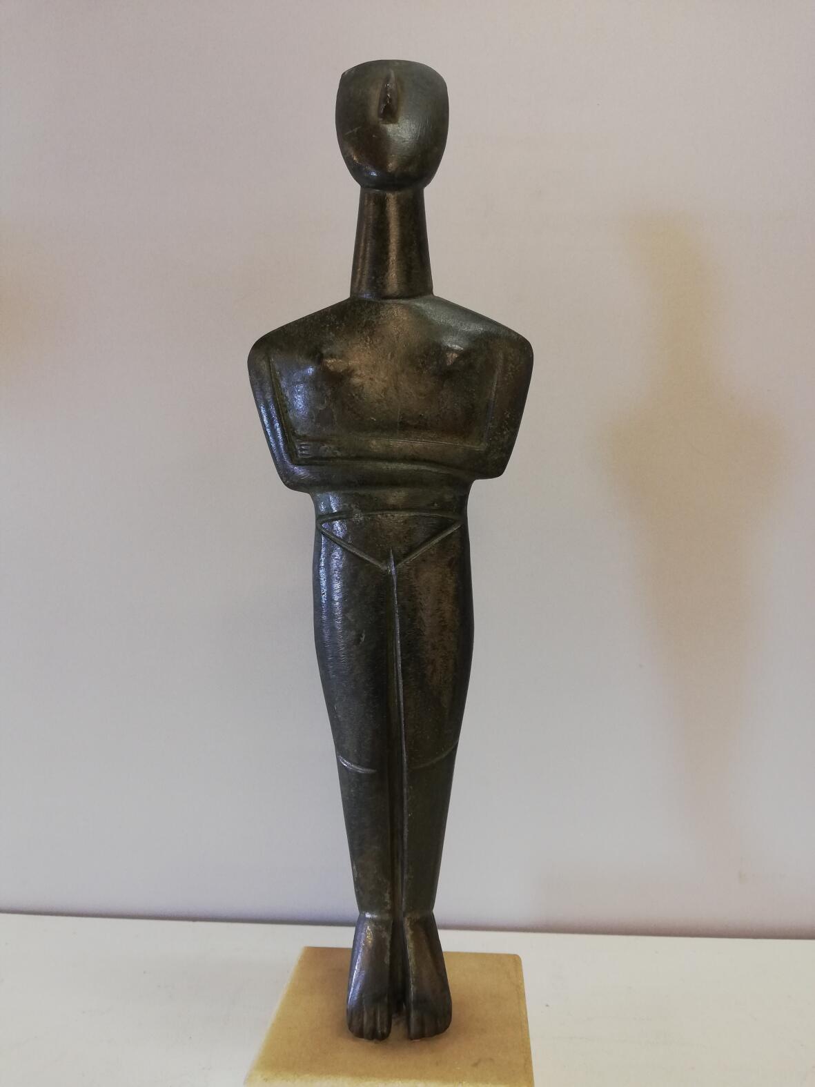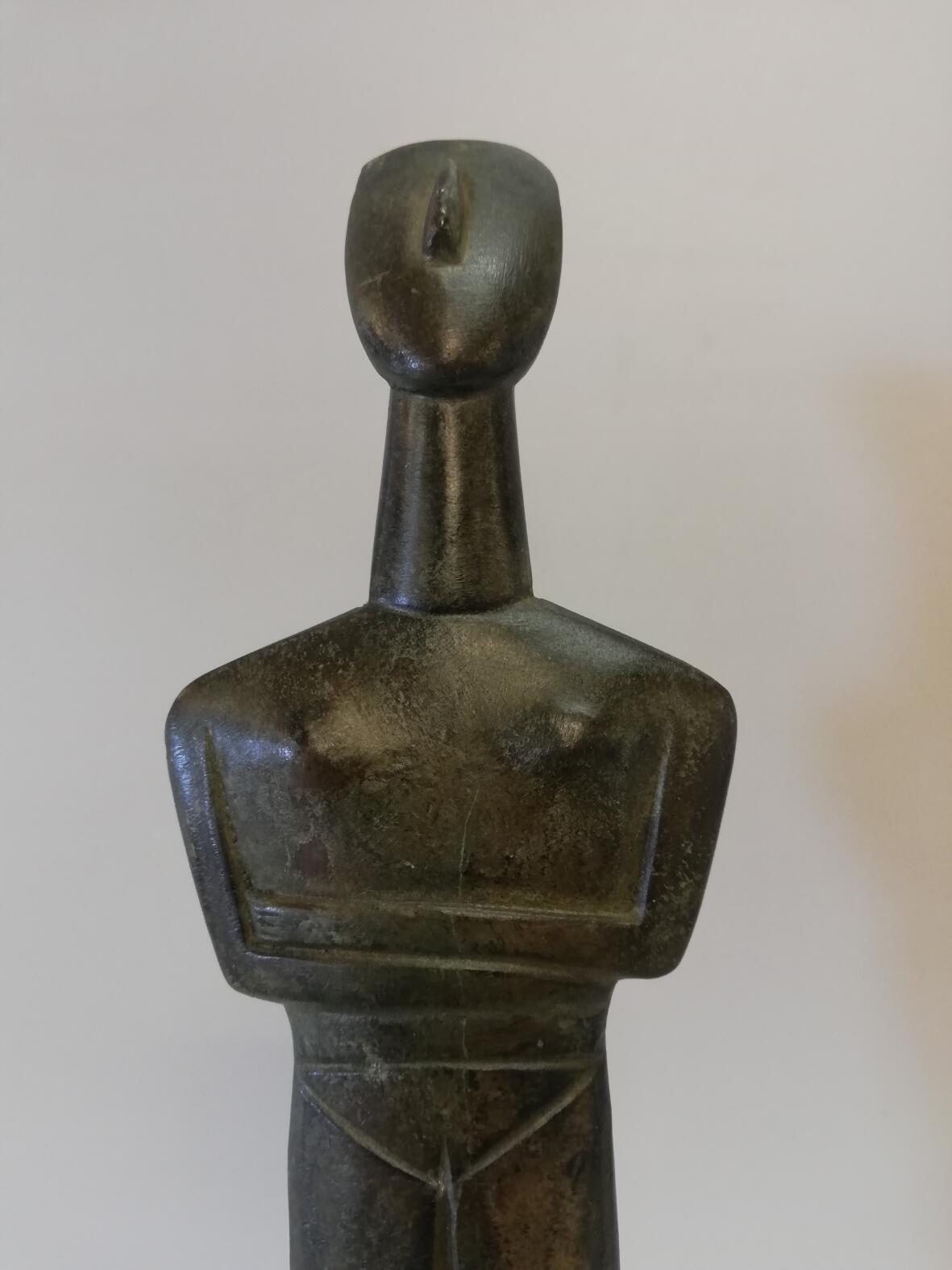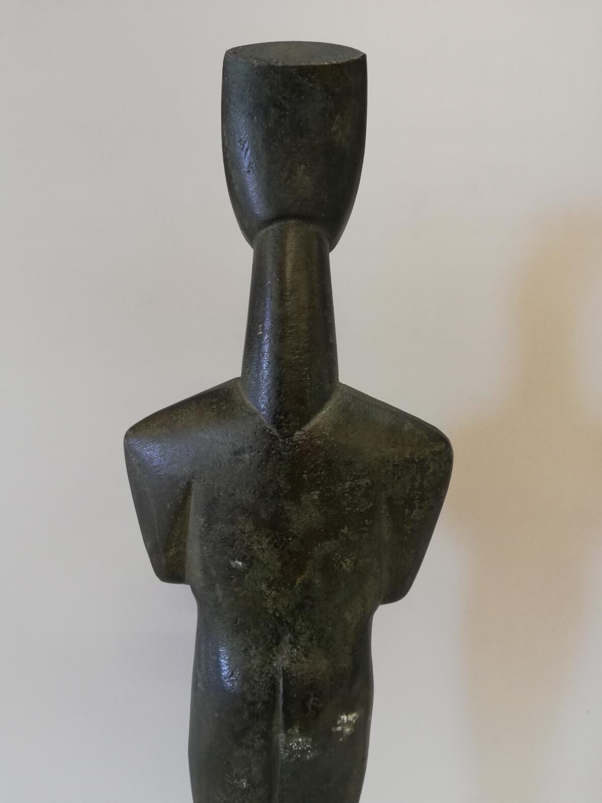 20. Jhdt, Bronze Figur mit Marmorsockel, Kykladenidol