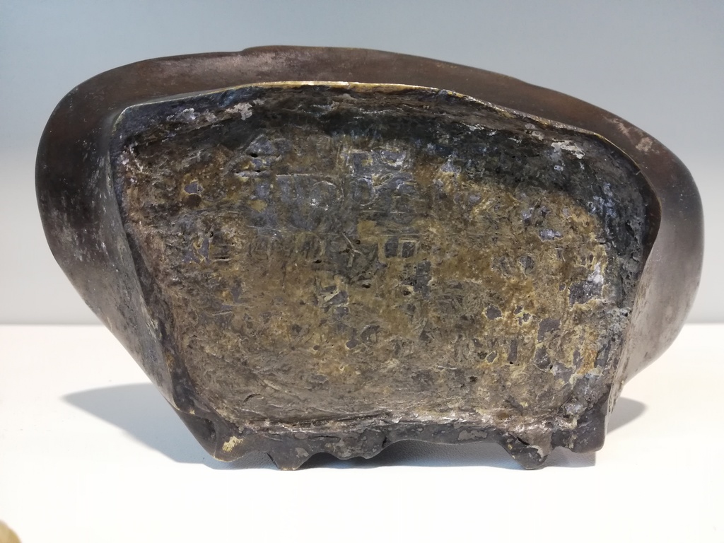 an Unterseite eingeritzt alt oder neugriechisch Inschrift, komplett gefüllt