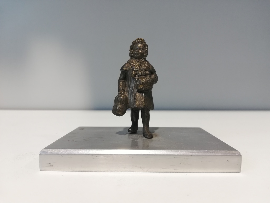 19.Jhdt. Bronzefigur auf Aluplatte: 8,5 x 6cm , Gesamthöhe: 7cm