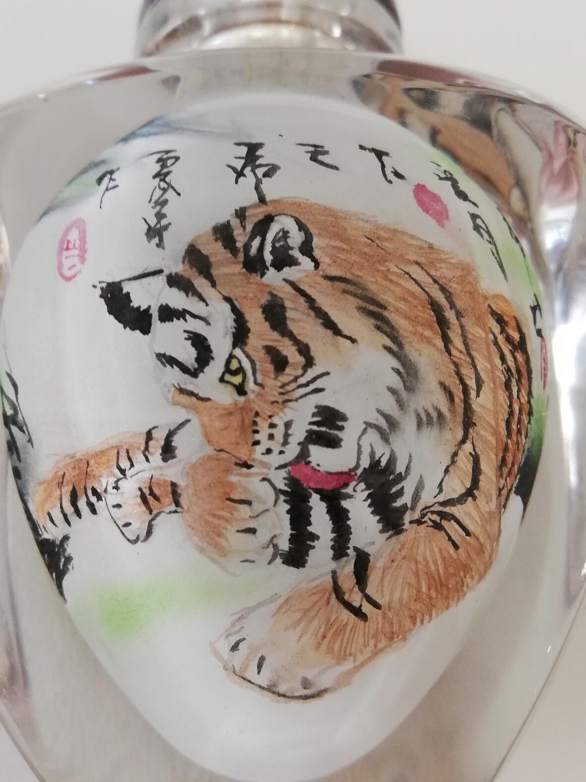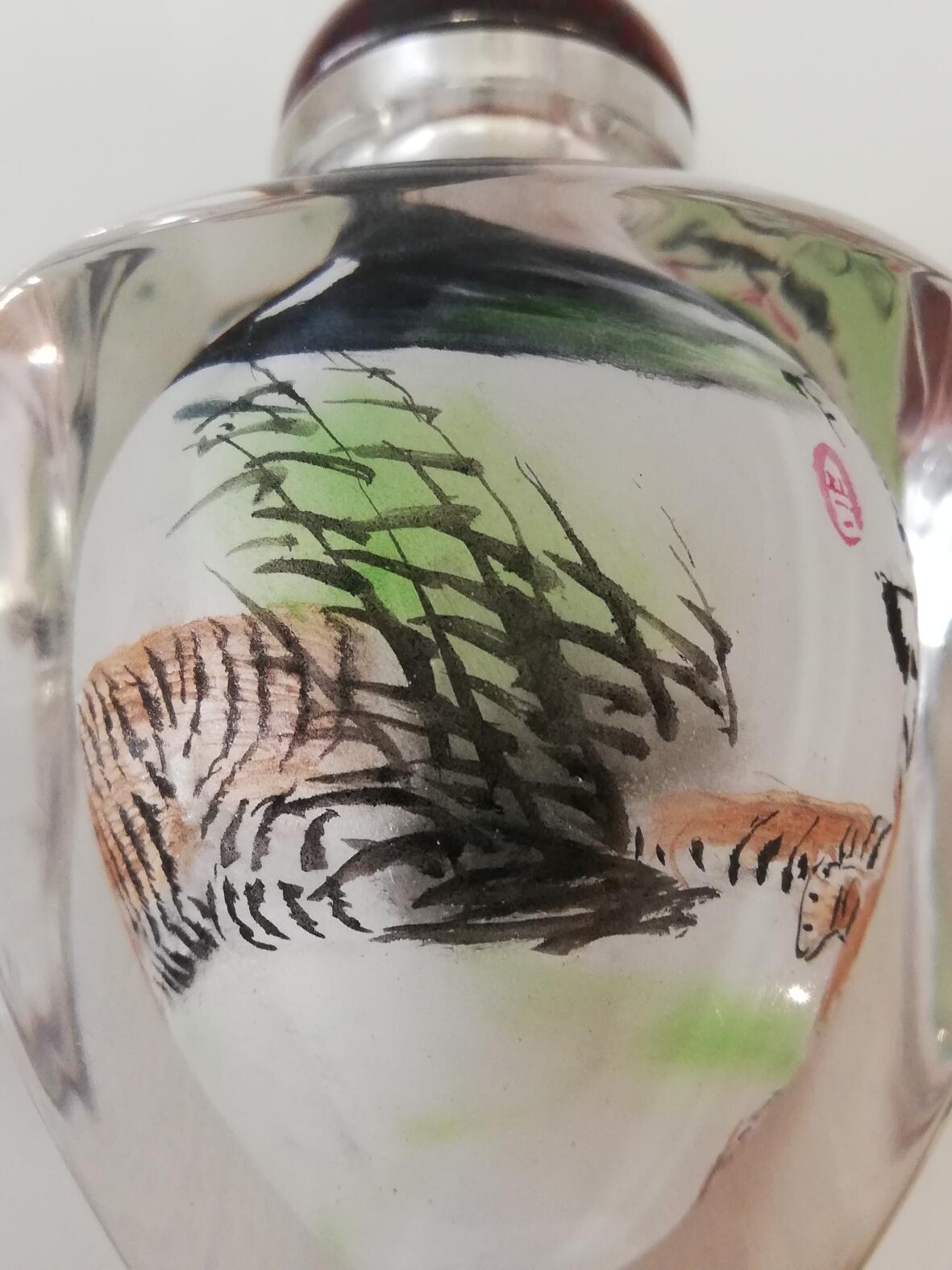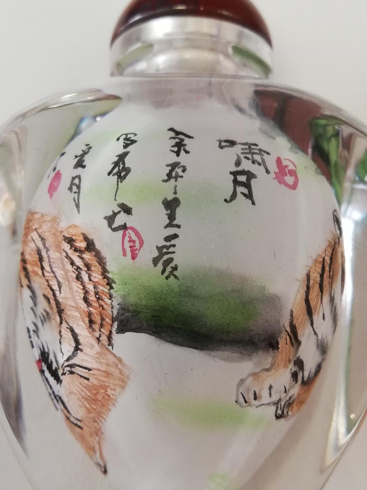 19.-20.Jhdt. asiatischer Glasflacon mit Malerei an der Innenseite