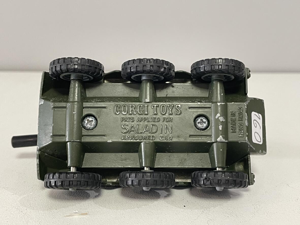 Marke: am Boden Aufschrift: "CORGI TOYS PATS APPLIED FOR SALADIN ARMOURED CAR" und "MADE IN HONG KONG"