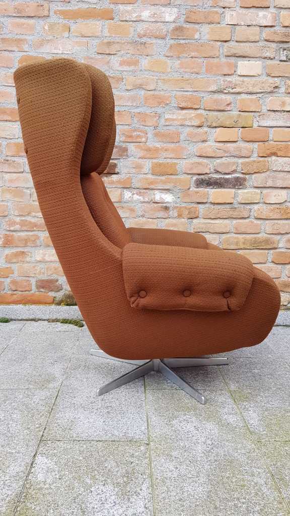 um 1960, dunkelbraune Polsterung, Eisenfuß