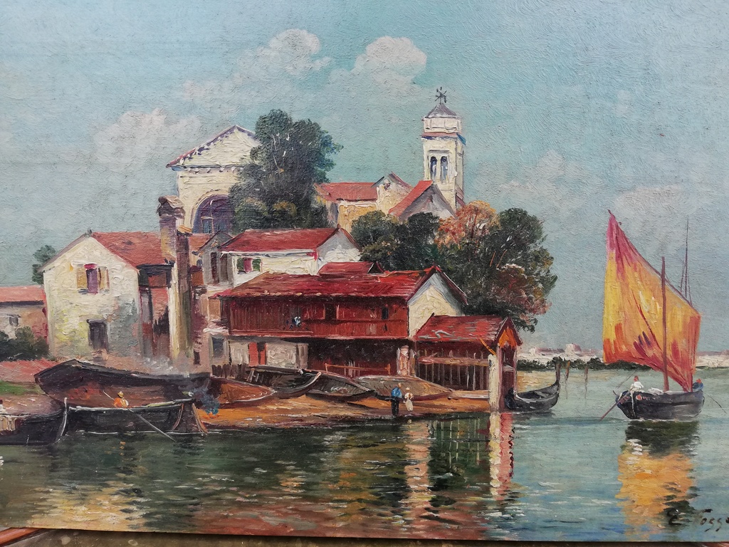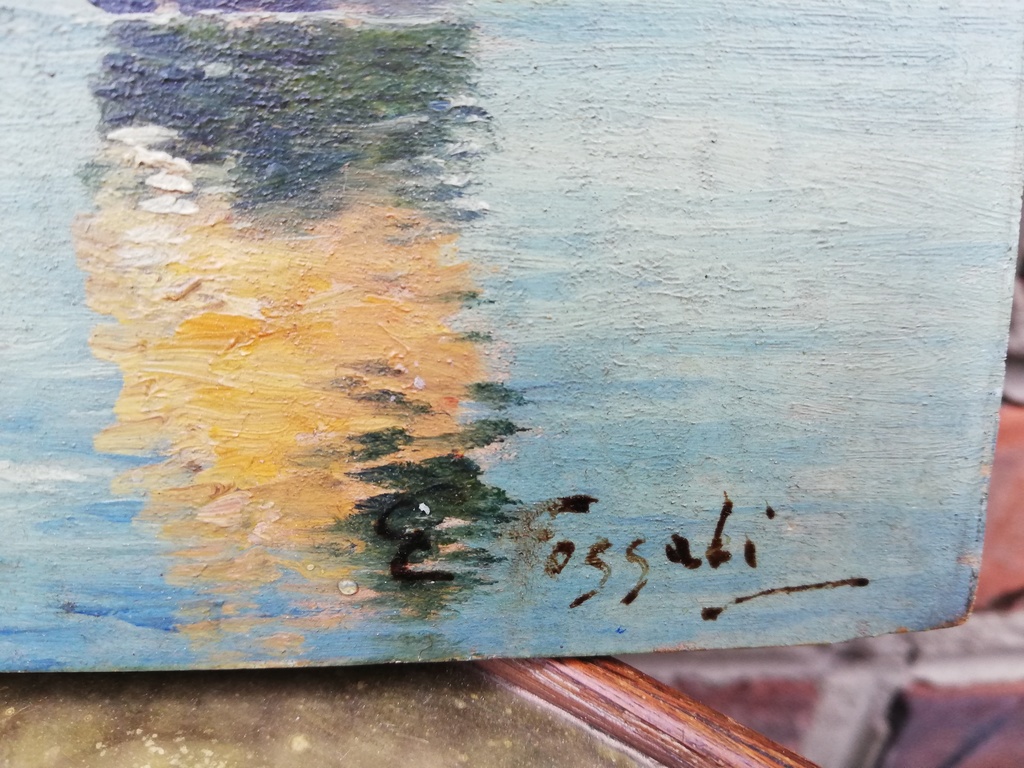 20 Jhdt. Küstenmotiv Italien, original Öl auf Holz, signiert E. Fossati,