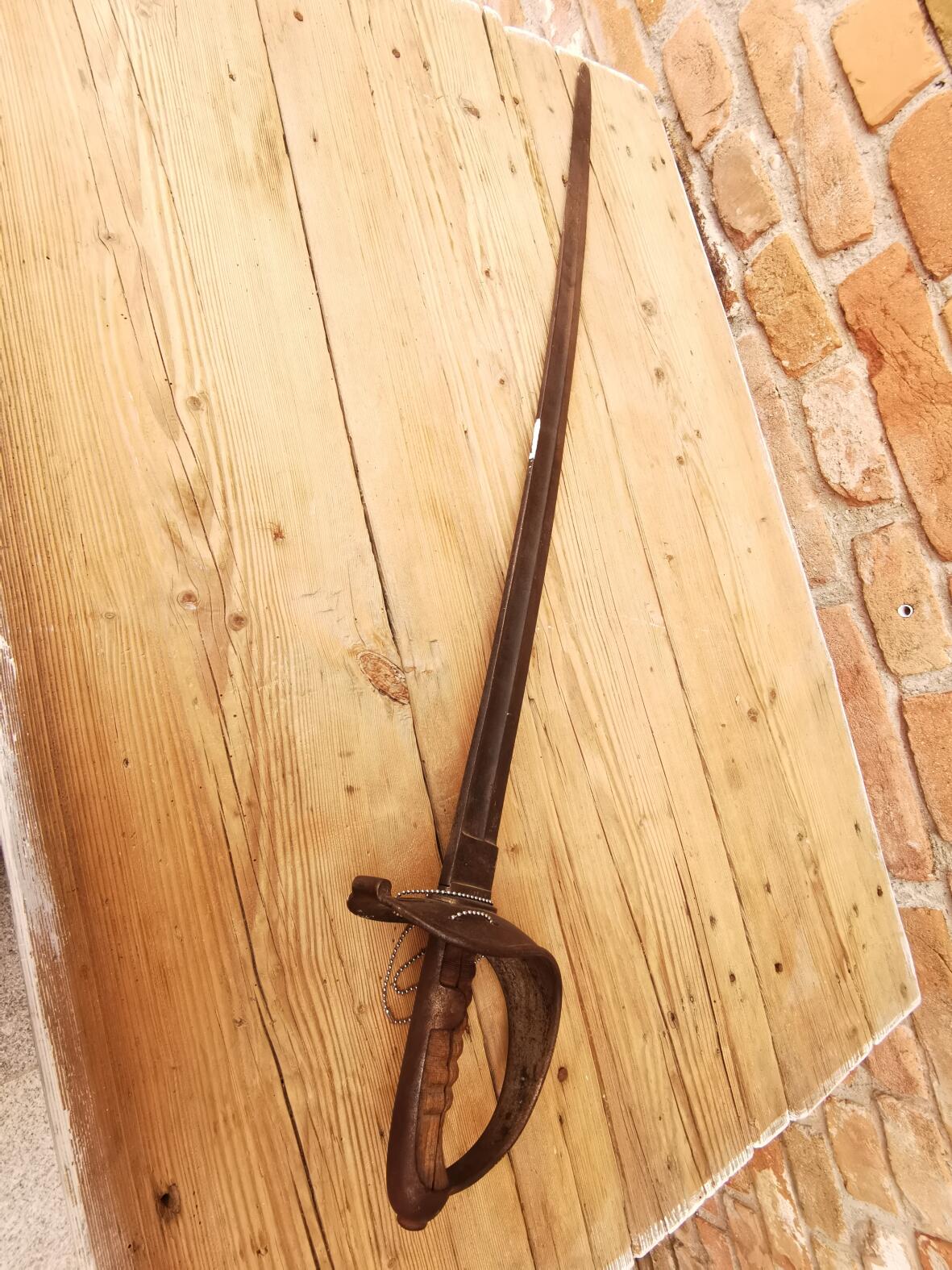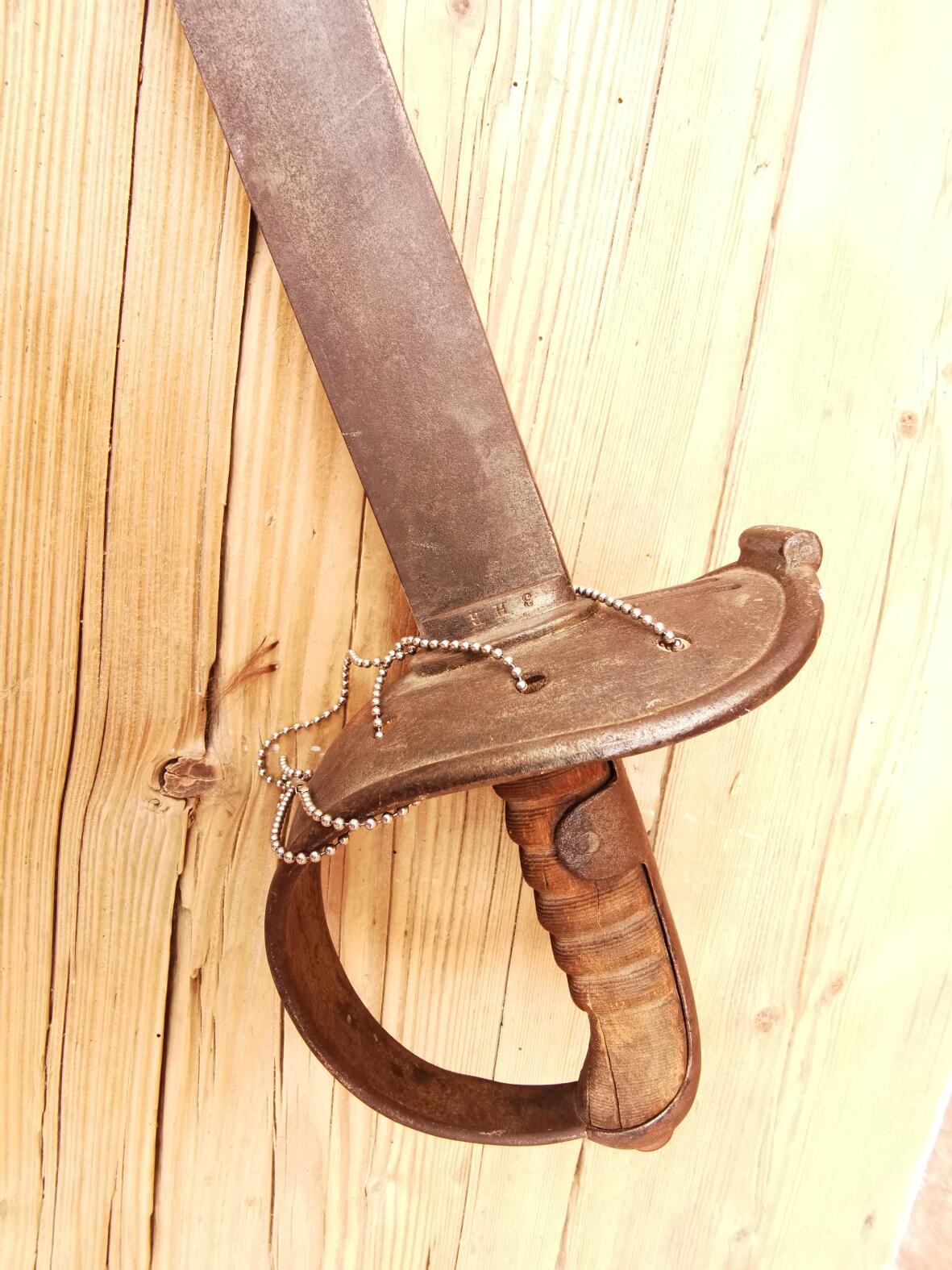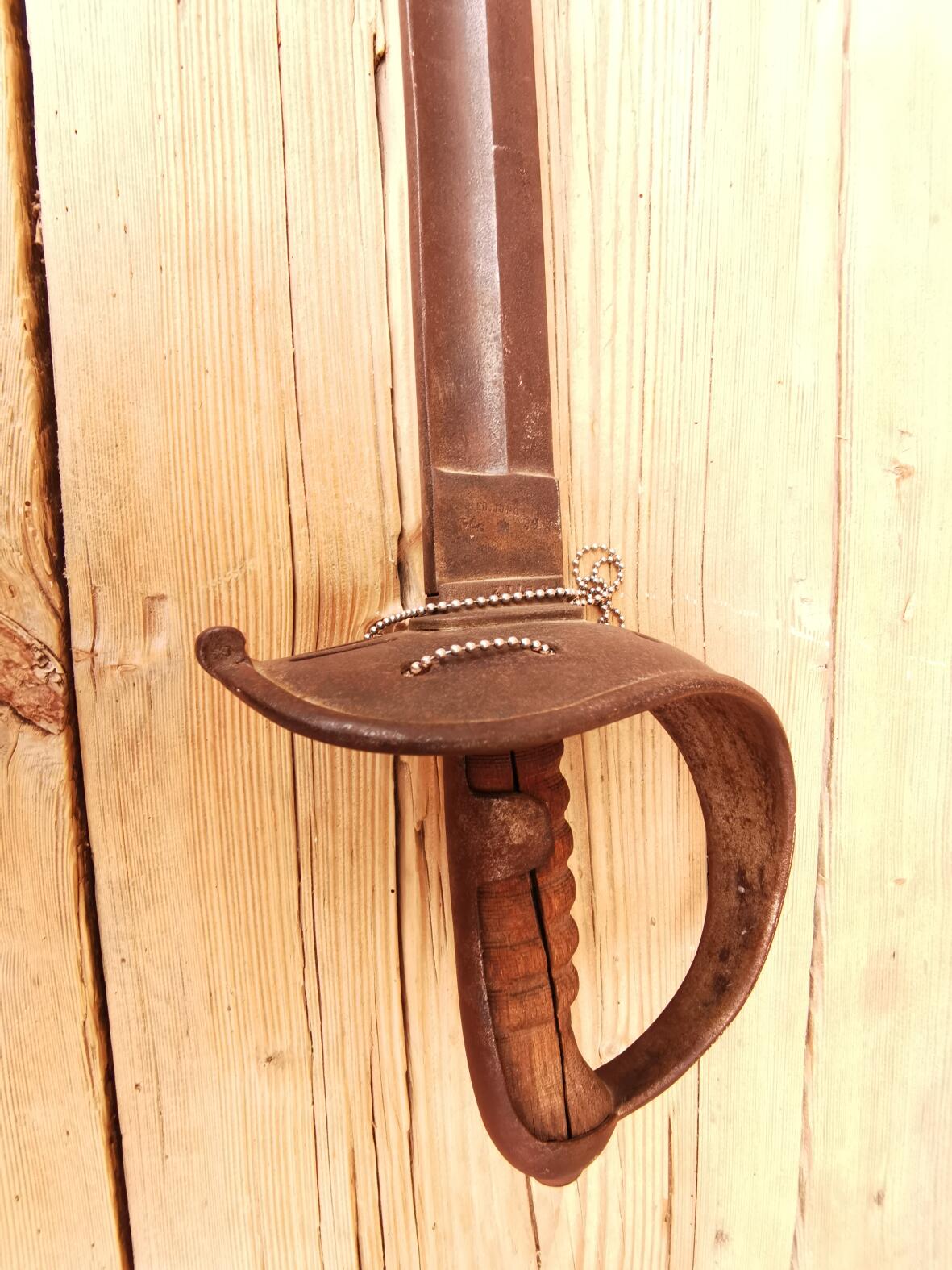 19./20. Jhdt. Klinge und Parierstange aus Eisen, Griff aus Holz. An Klingen diverse Zahlen eingeschlagen.