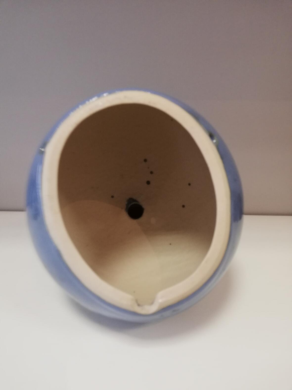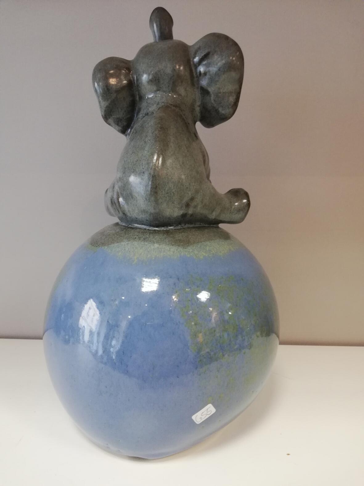 20.Jhdt. Elefant grau glasiert , blau glasierte Kugel