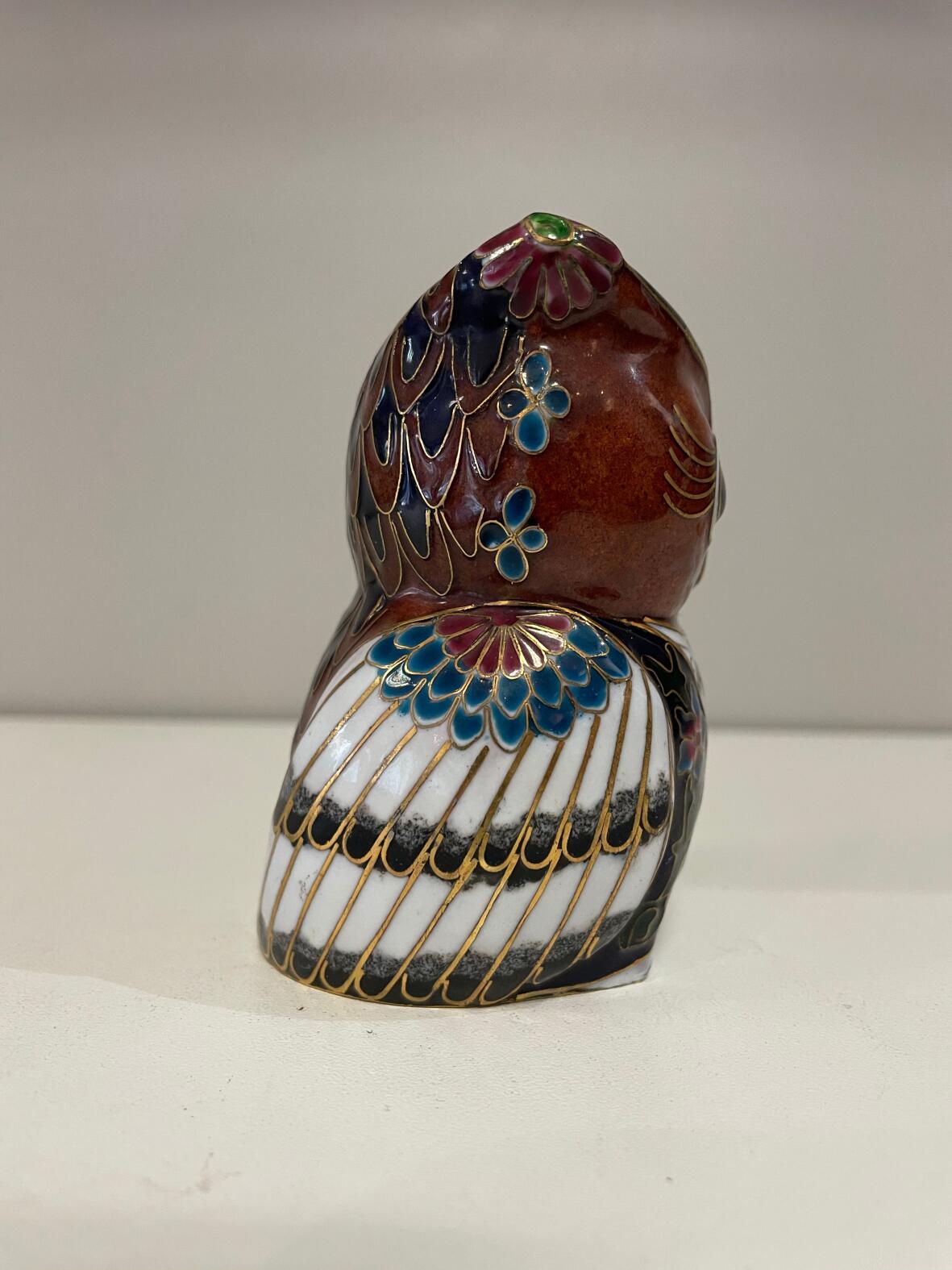 (Weitere Suchbegriffe: Limogearbeit, Statue,Japan, Asiatika, Skulptur, Statuette, Uhu, Cloisonné )