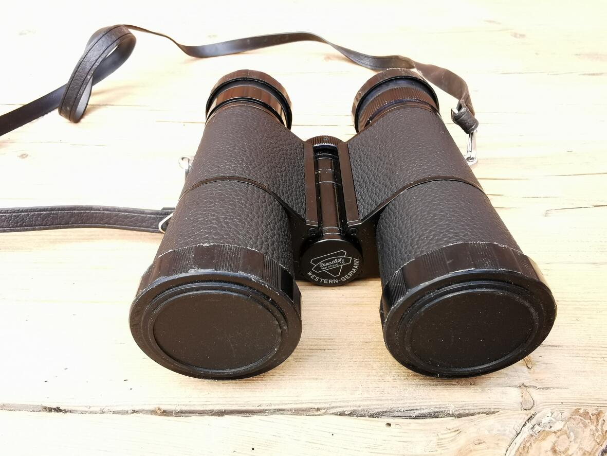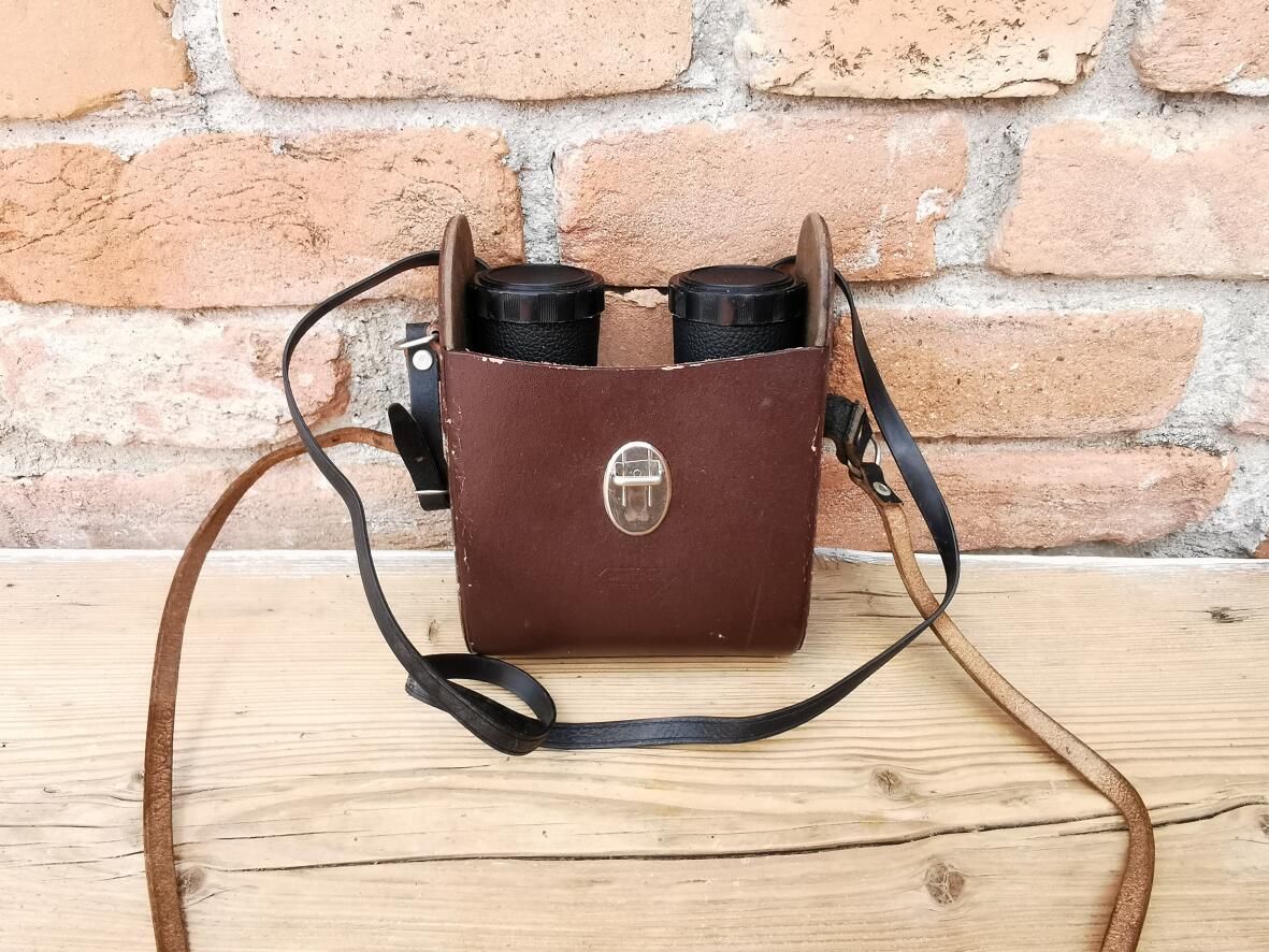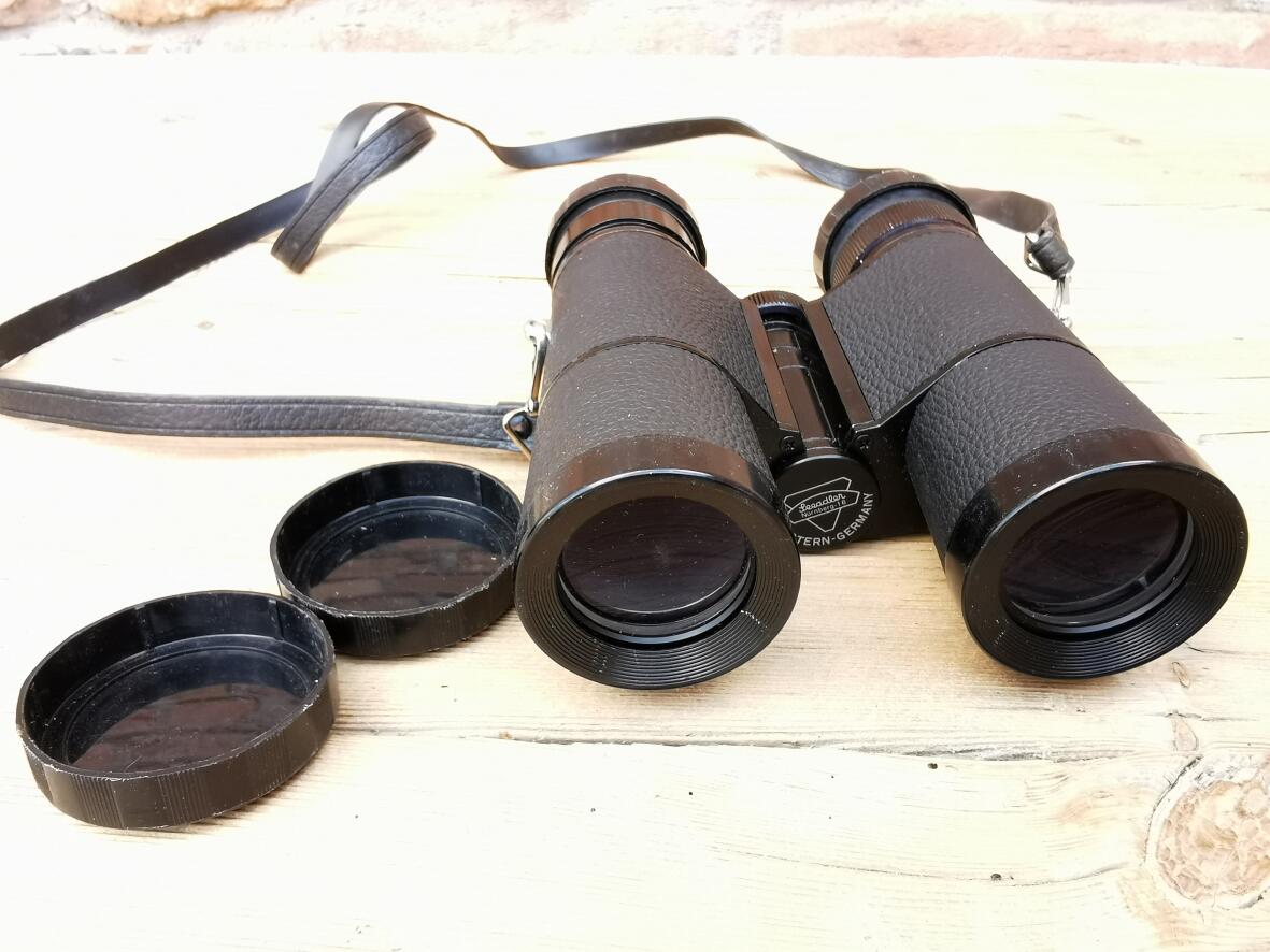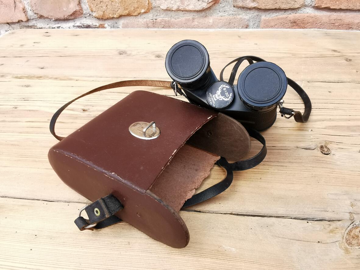Fernglas mit Schutzklappen, adjustierbar für kleinere Augenabstände.