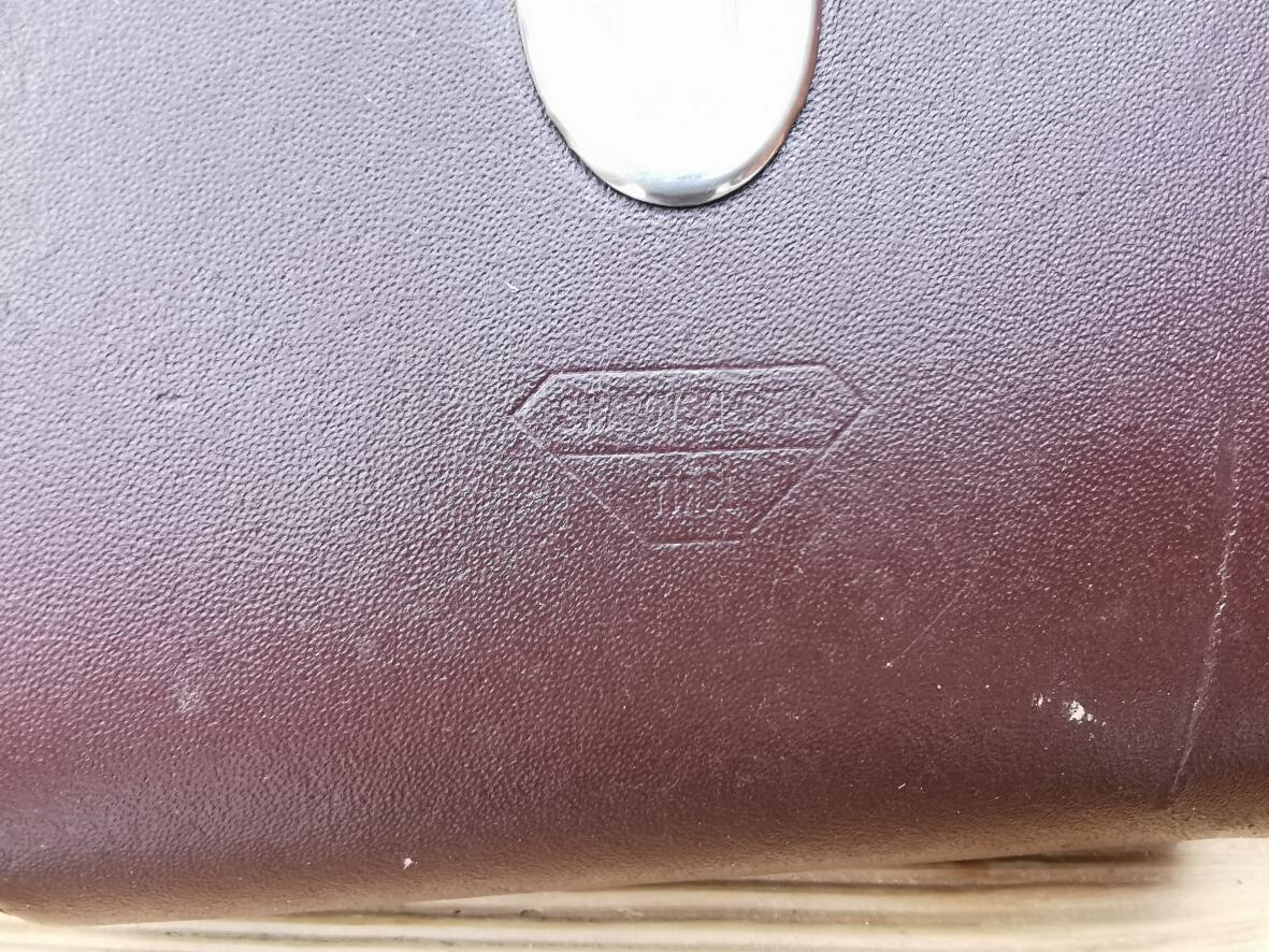 Braunes Lederetui, Deckel abgerissen.