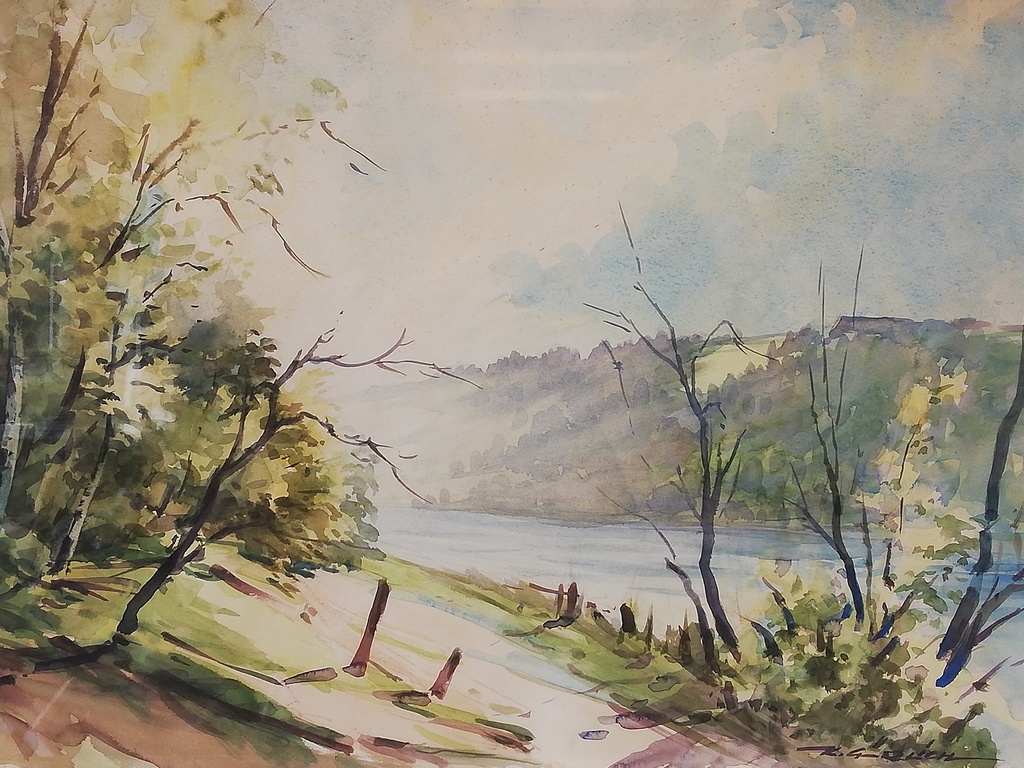 Flusslandschaft- Aquarell