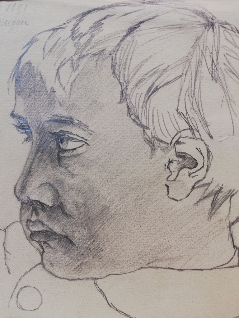 Tintenbeschriftung an Rückenseite ,, Skizze um 891."