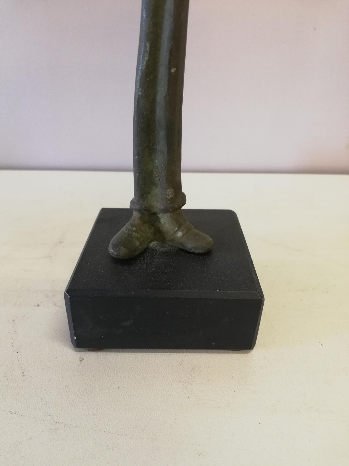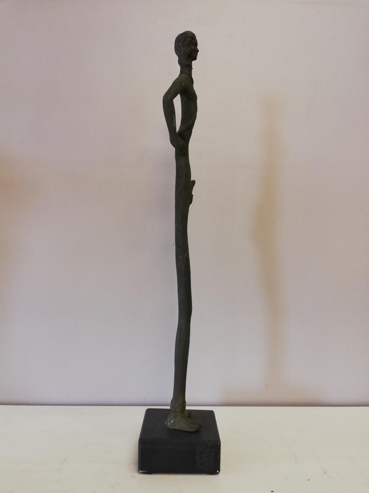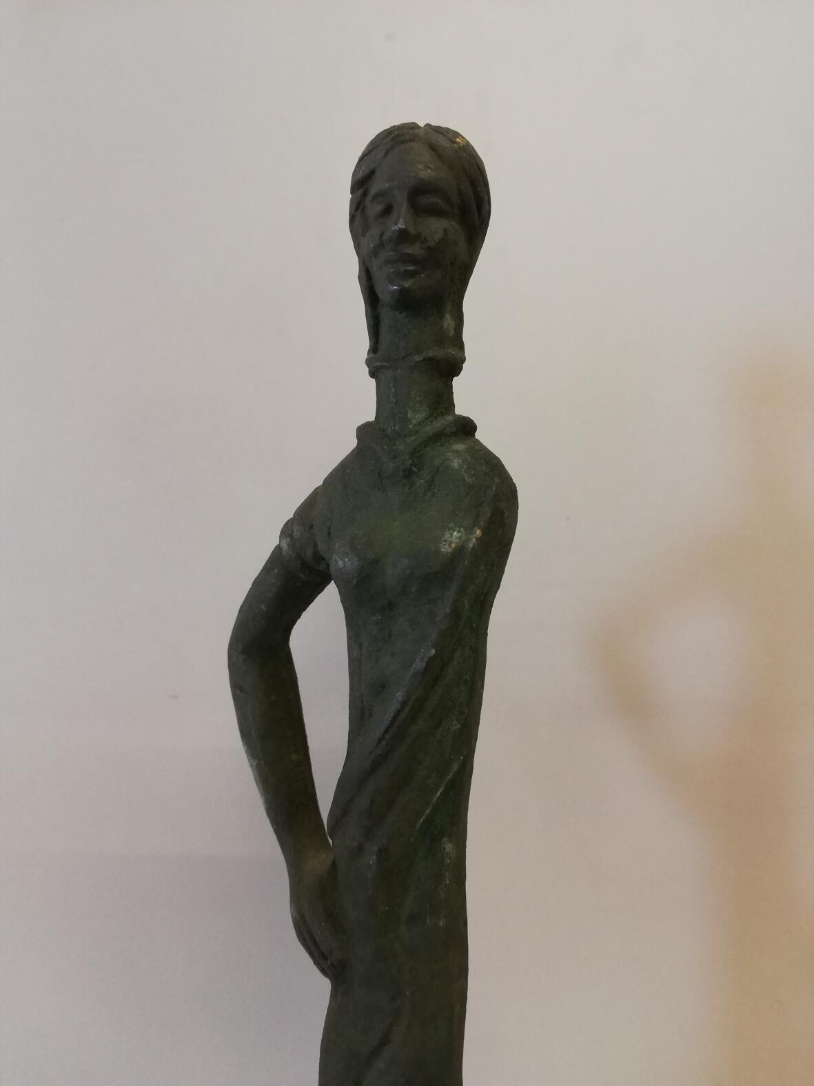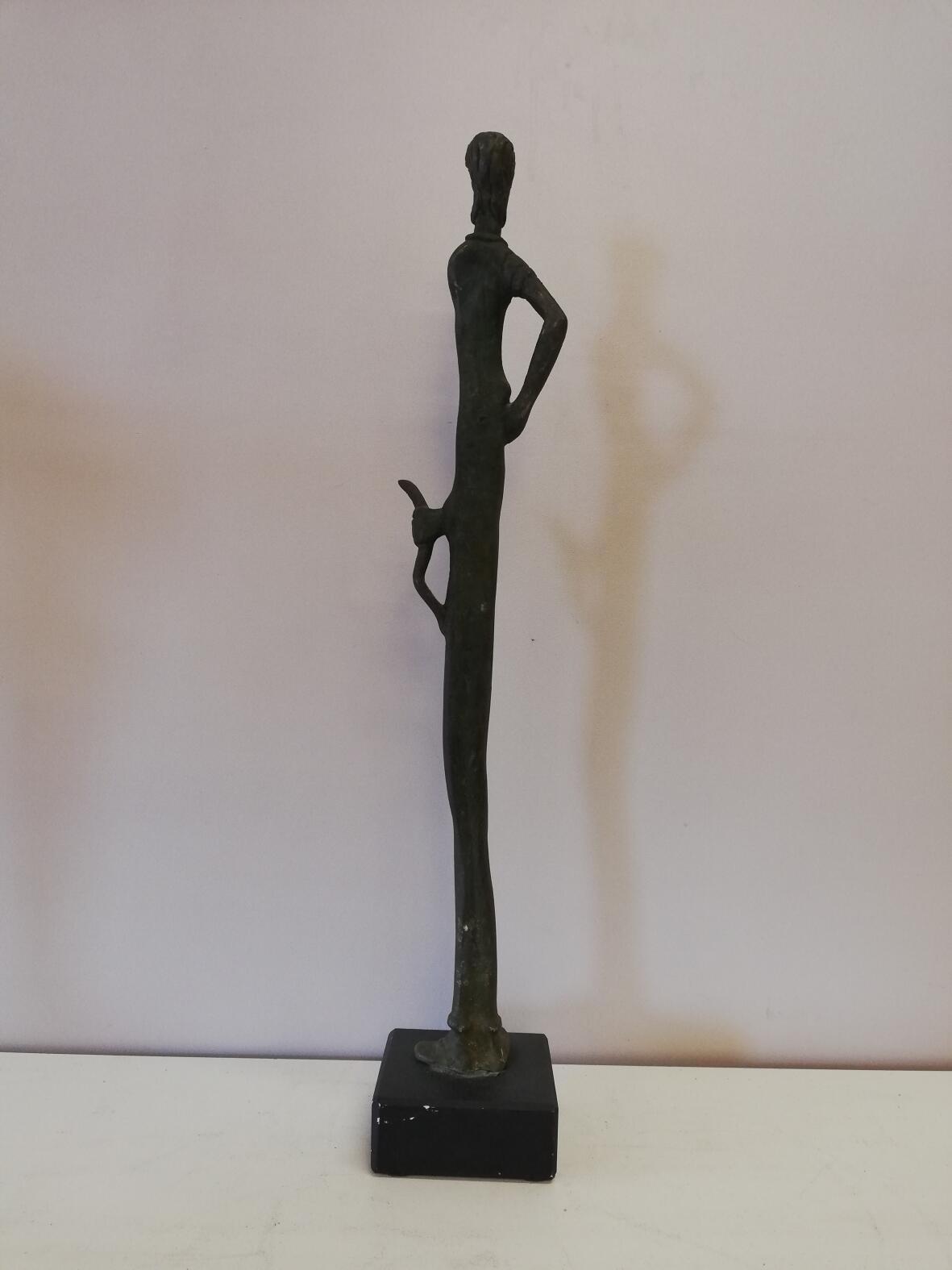 Darstellung: Sehr dünne Frau hält Schlange, rechter Arm in Hüfte gestützt,
