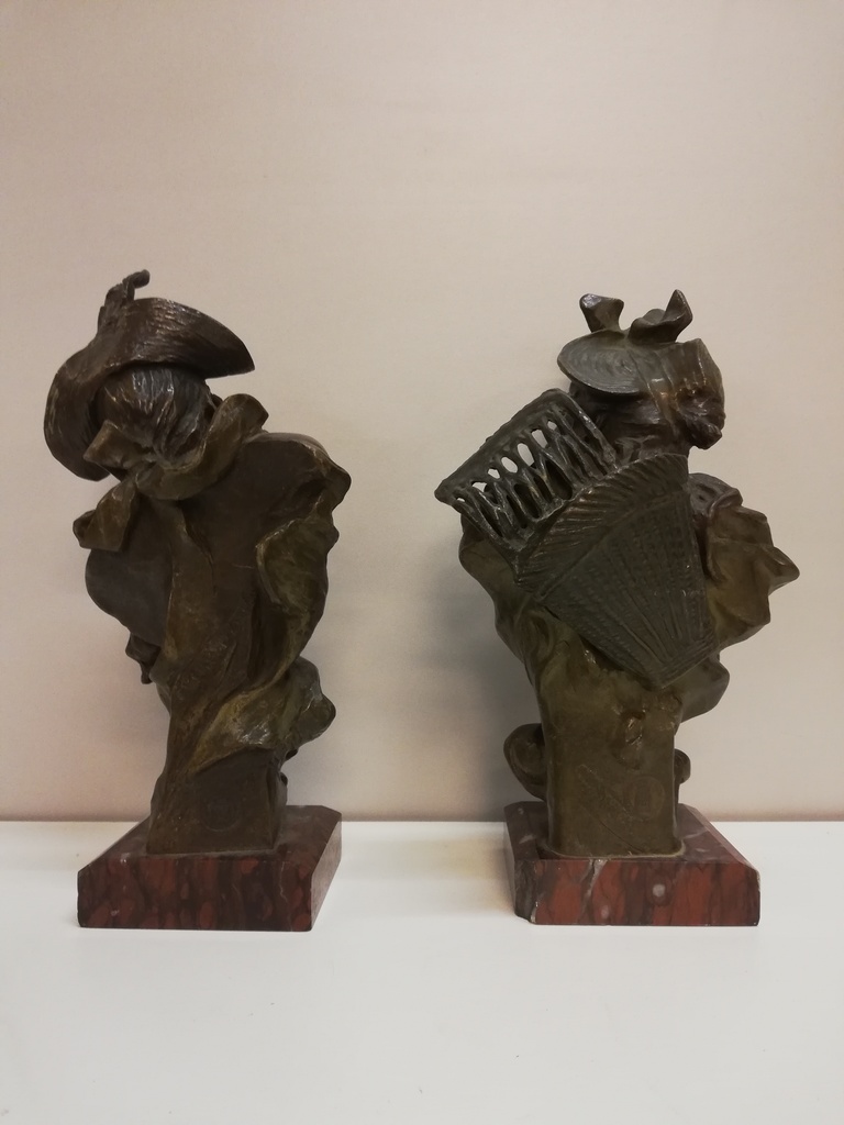 um 1900 , Paar Jugendstil Bronzebüsten ,