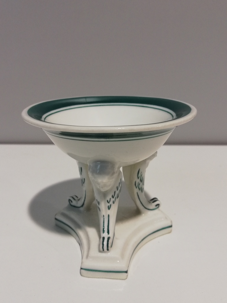 grün umrandet, Schale getragen von 3 geflügelten Engelsköpfen auf Standplatte
