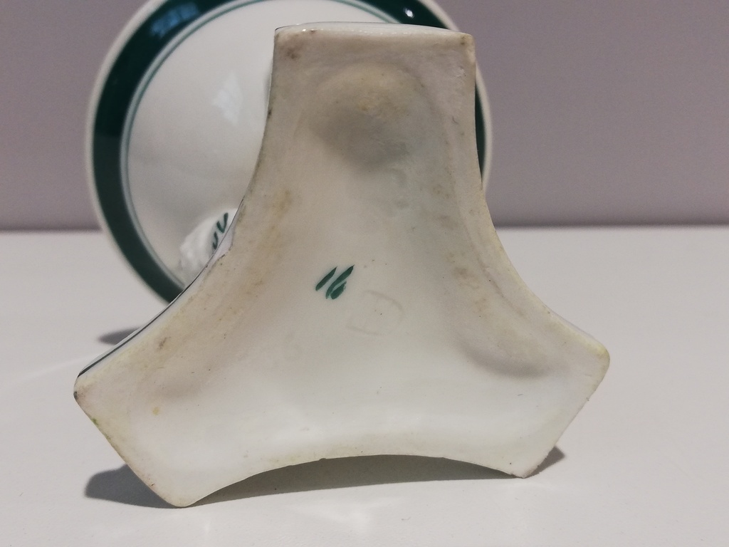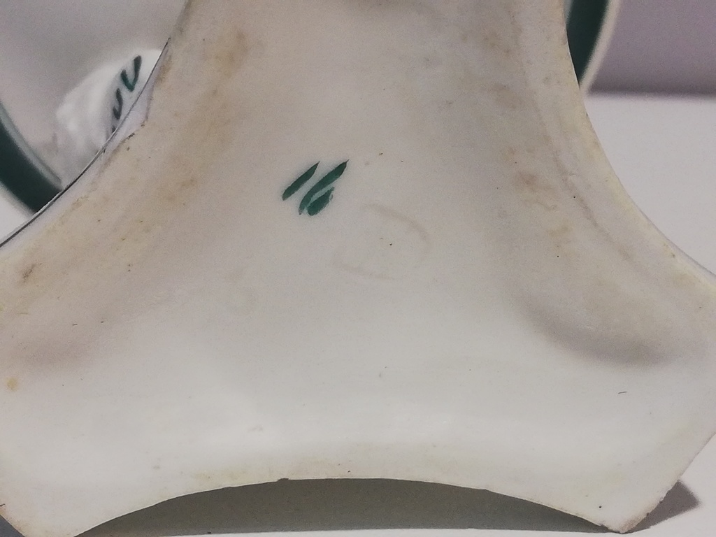 Unterseite: farblos eingepresster Bindenschild, Jahresstempel ,, 836 " Malernummer: 14 in Aufglasurgrün, Weißdrehernummer nicht lesbar