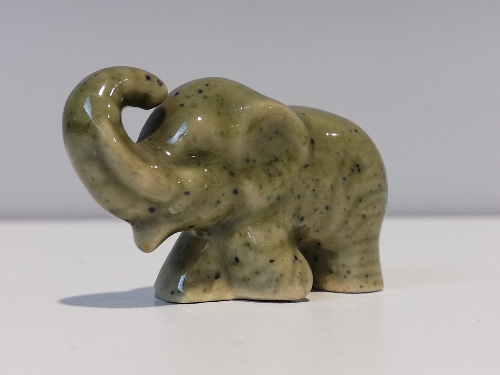 20.Jhdt. Elefant , Keramik, graulich-grüne Keramik mit Punkten