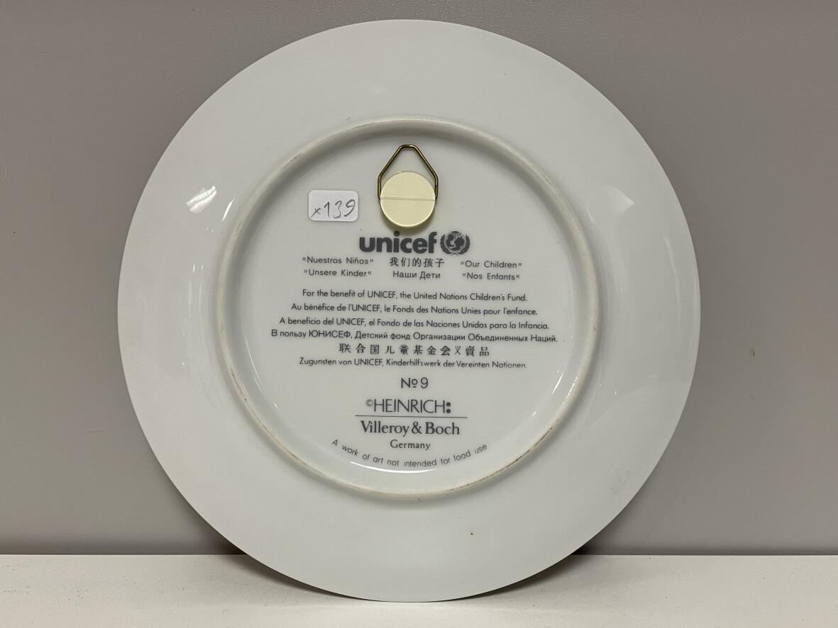 Signatur/Marke: auf der Vorderseite aufgedruckte Signatur "K. Blume"; laut grau aufgedruckter Beschriftung an der Rückseite: Nr. 9 aus der Tellerserie "Unsere Kinder" der "unicef", "Zugunsten von UNICEF, Kinderhilfswerk der Vereinten Nationen", Marke: ©HEINRICH: Villeroy & Boch Germany", "A work of art not intended for food use"