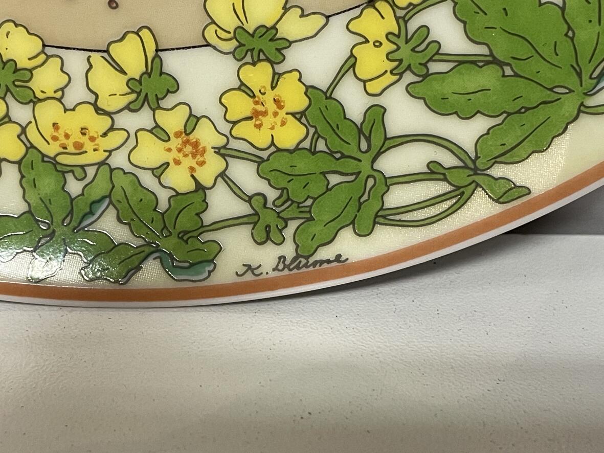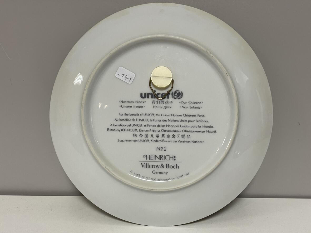 Signatur/Marke: auf der Vorderseite aufgedruckte Signatur "K. Blume"; laut grau aufgedruckter Beschriftung an der Rückseite: Nr. 2 aus der Tellerserie "Unsere Kinder" der "unicef", "Zugunsten von UNICEF, Kinderhilfswerk der Vereinten Nationen", Marke: ©HEINRICH: Villeroy & Boch Germany", "A work of art not intended for food use"
