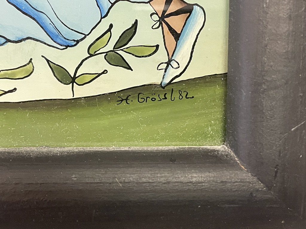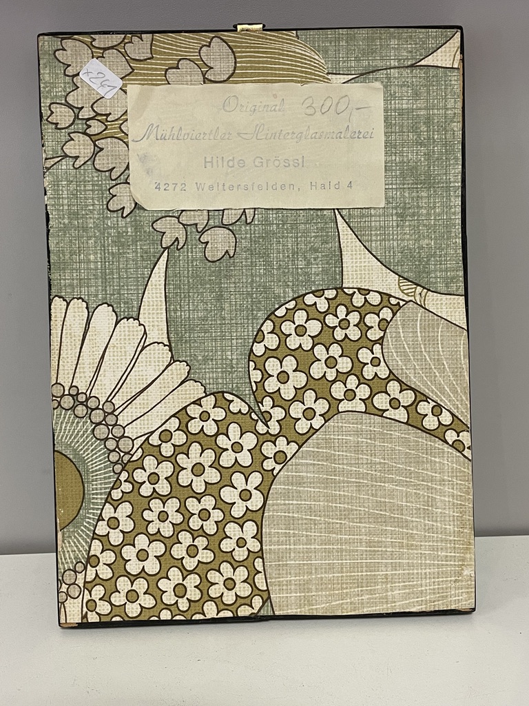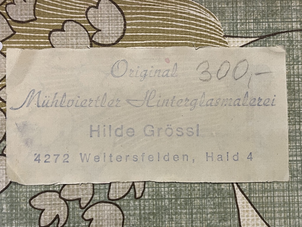 Signatur und Datierung: rechts unten: "H. Gössl 82"; Aufkleber an der Rückseite mit Stempel: "Original Mühlviertler Hinterglasmalerei Hilde Gössl 4272 Weitersfelden, Haild 4"
