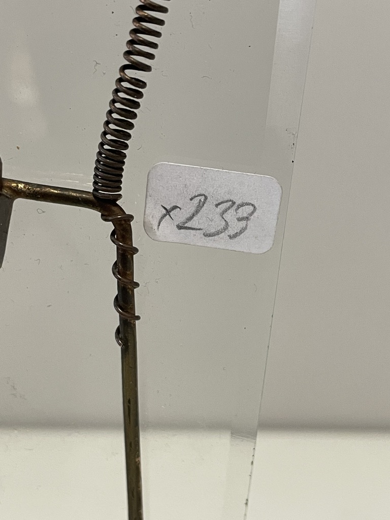 Zustand: am Rand des Glases einige kleinere Absplitterungen; Glas sitzt schief im Gestell