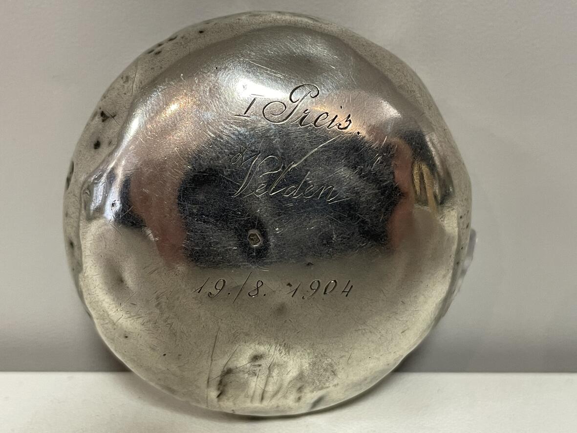 Gravur am Boden ,, I Preis Velden 197 8. 1904 " am Deckel gepresster Jugendstildekor