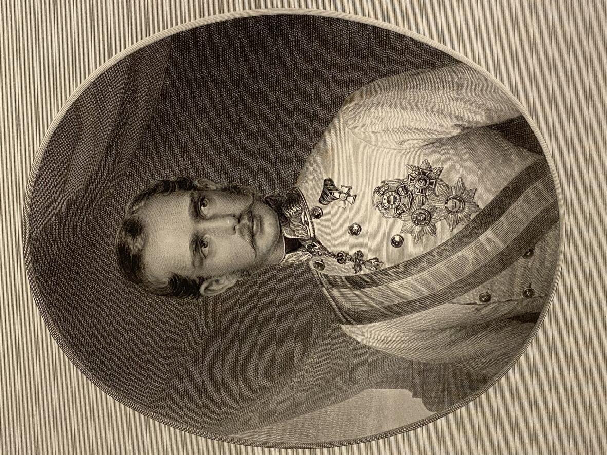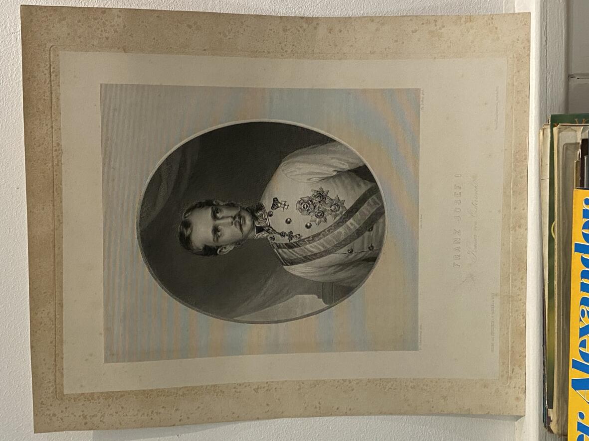 Porträt des Kaisers in Uniform mit Ordensschmuck, Stahlstich von Franz Stöber nach Franz Schrotzberg, um 1855,Passep. gerahmt, verglast