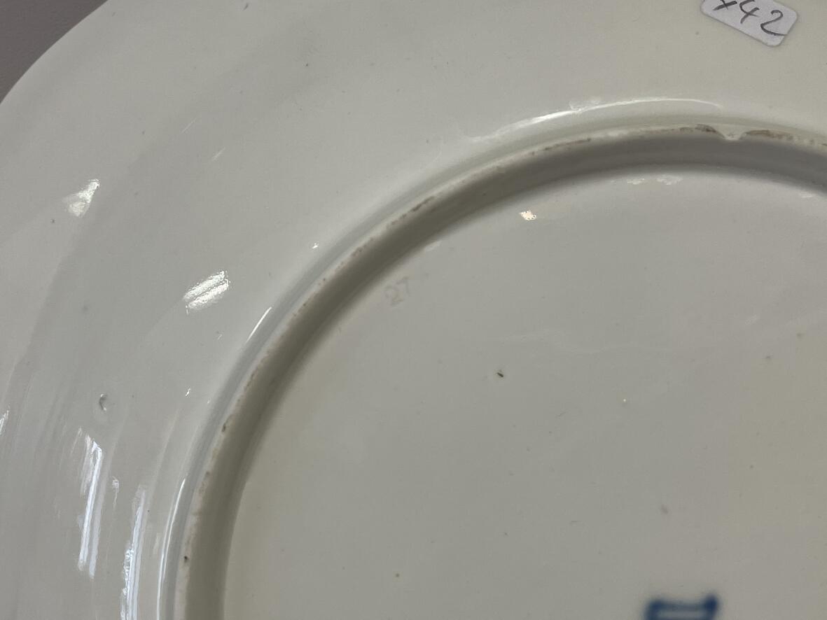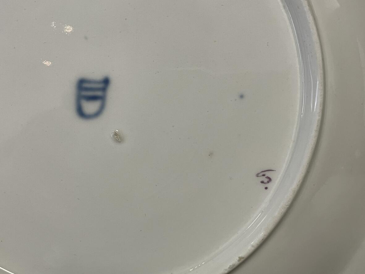 Marke: an der Unterseite unterglasurblau gemalter Bindenschild, Buntmalernummer "63"