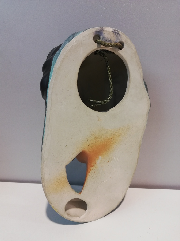Keramik Wandmaske erzeugt um 1950, farbig staffiert