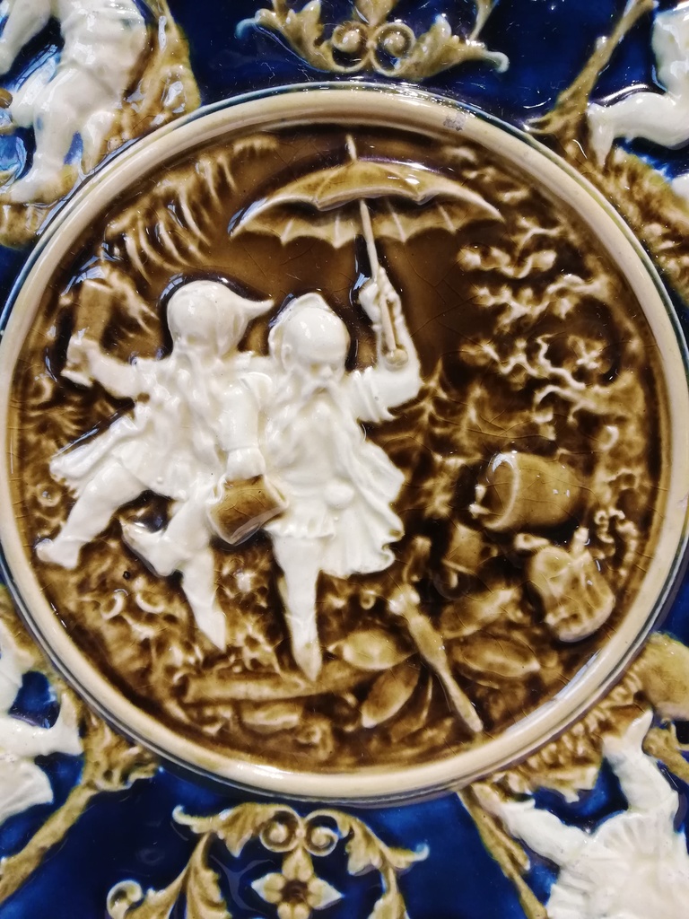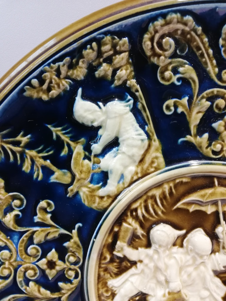 glasierte Keramik / Fayence im Stil der Historismus, rückseitig: Marke Bogenschütze in G, ,, MADE IN AUSTRIA " ,, 540 "