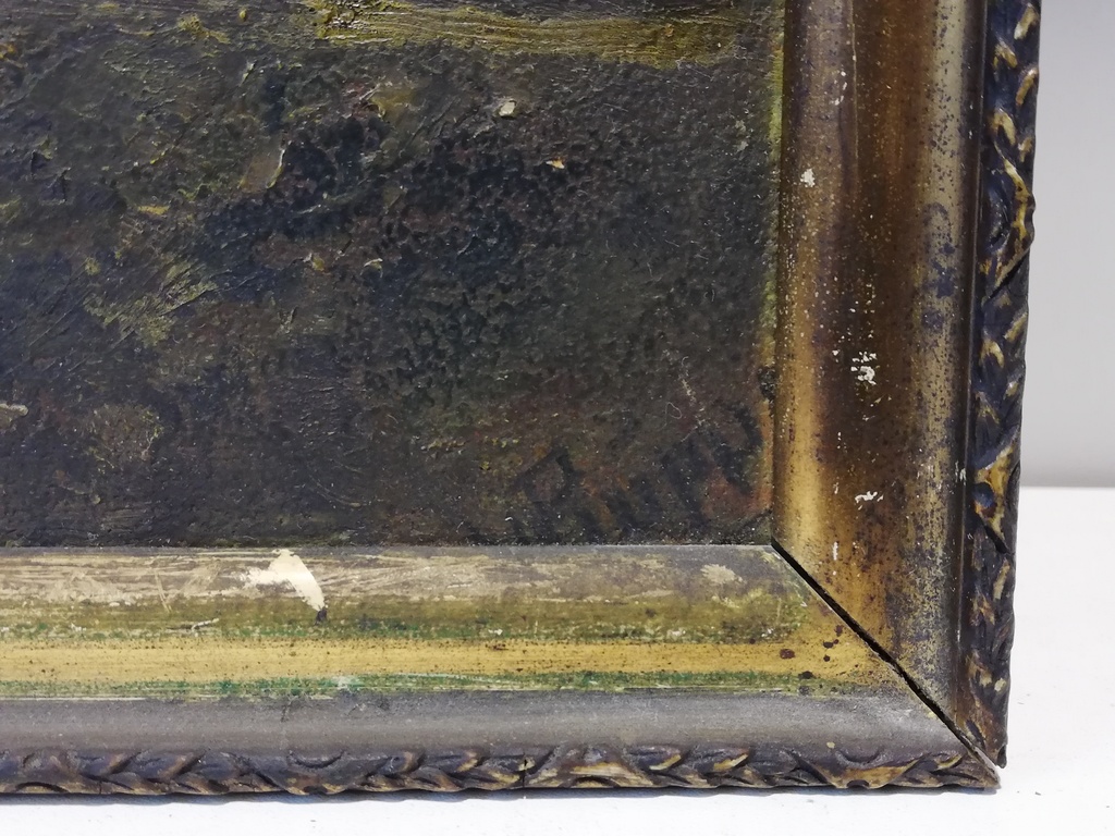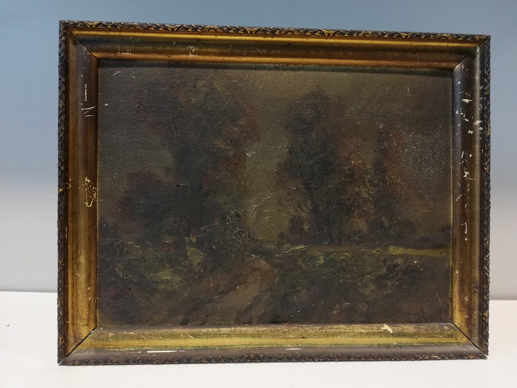 Öl auf Karton, sehr dunkles Landschafts Motiv,