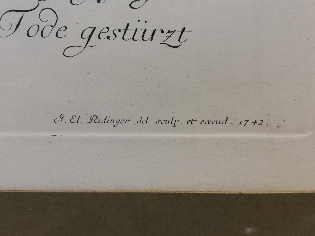Bezeichnung rechts unten: J.El. Ridinger del.sculp. et exeud: 1742., rechts oben: ,, 25 ,,