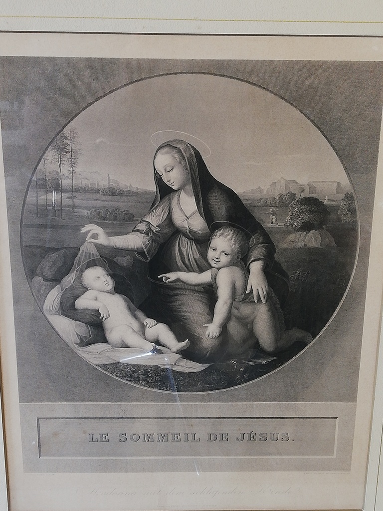 19.Jhdt. Kupferstich, nach Rafael: ,, LE SOMMEIL DE JESUS " ,, Madonna mit dem schlafenden Kind "
