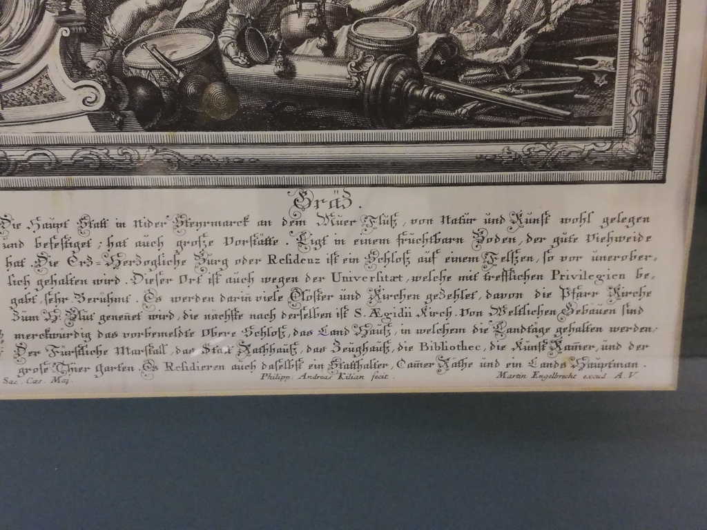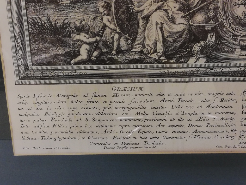 Motiv: oben Fahne von 2 Putti gehalten ,, GRAECIUM Gräz ,,