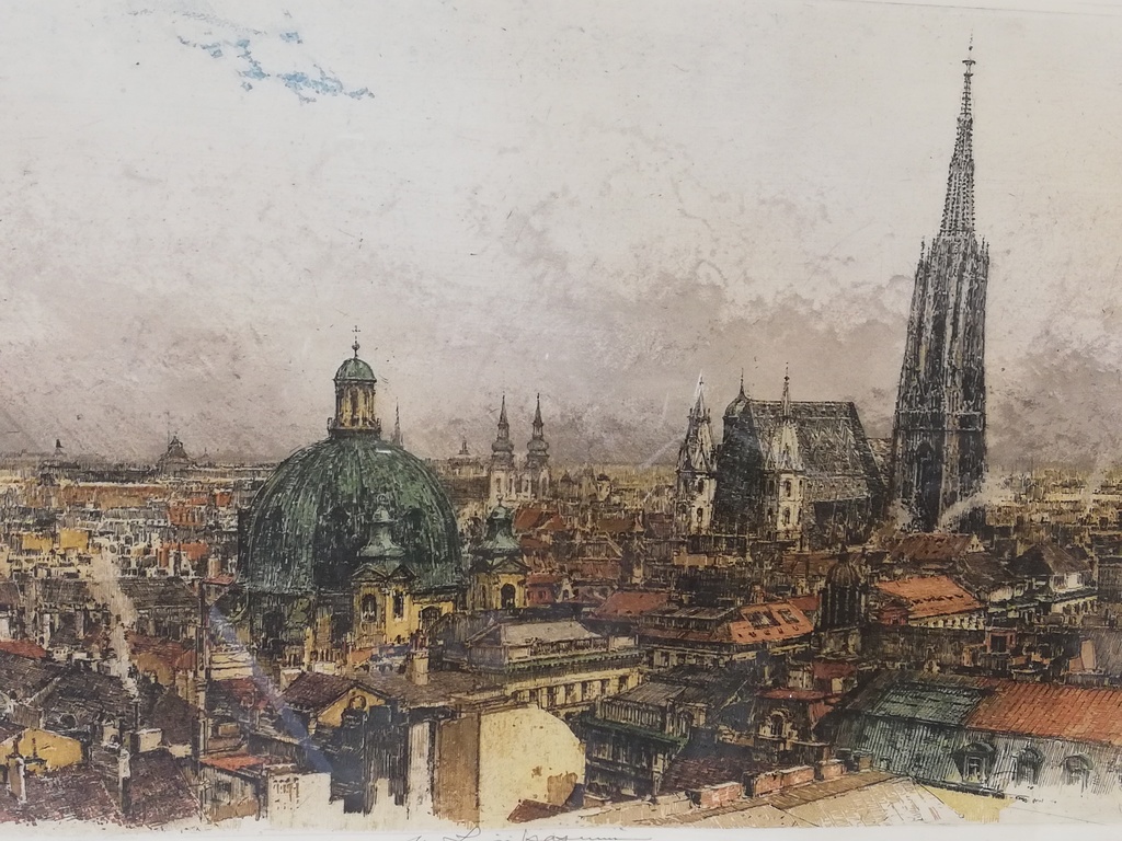 Motiv: "Blick über die Wiener Innenstadt" , links Kuppel der Peterskirche rechts Stephansdom