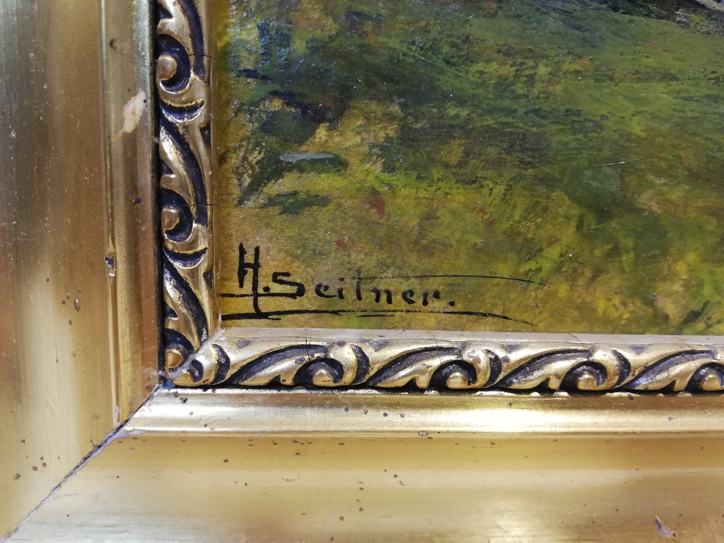 Signatur links unten ,, H.Seitner " Rückseite Beschriftung, war das Motiv dargestellt