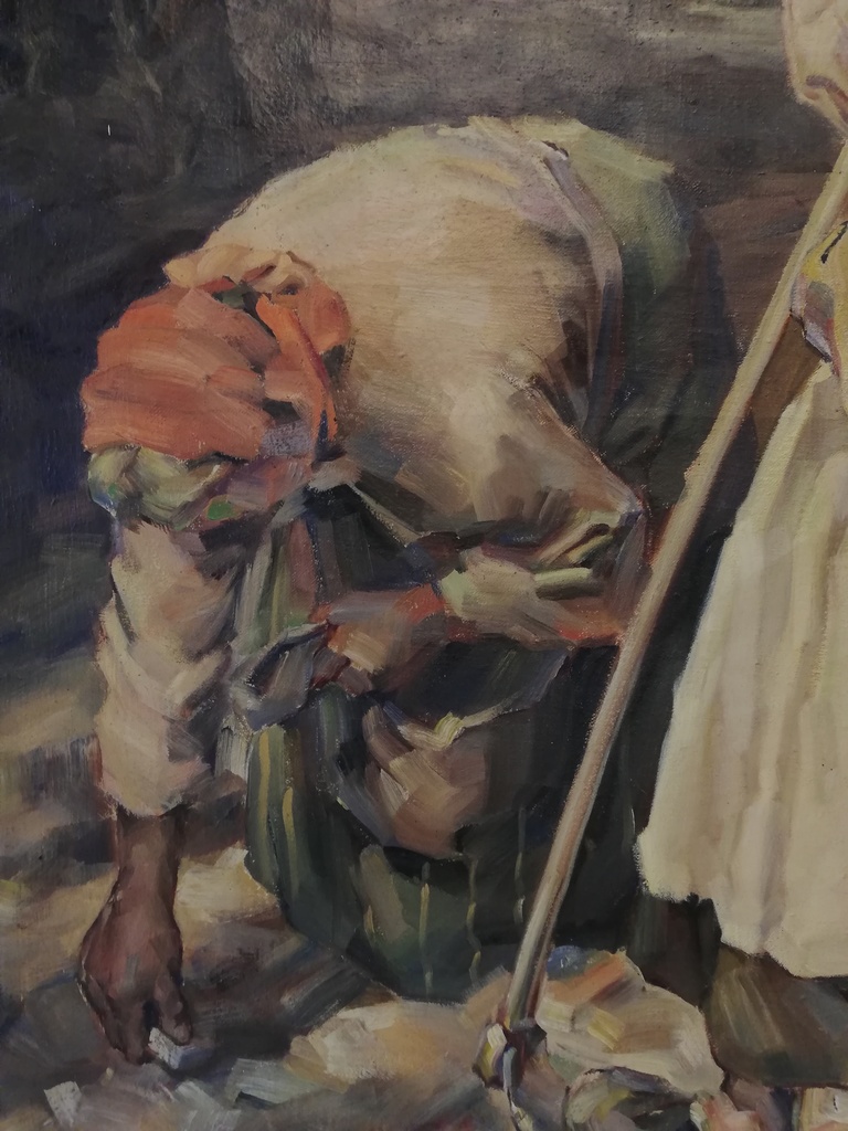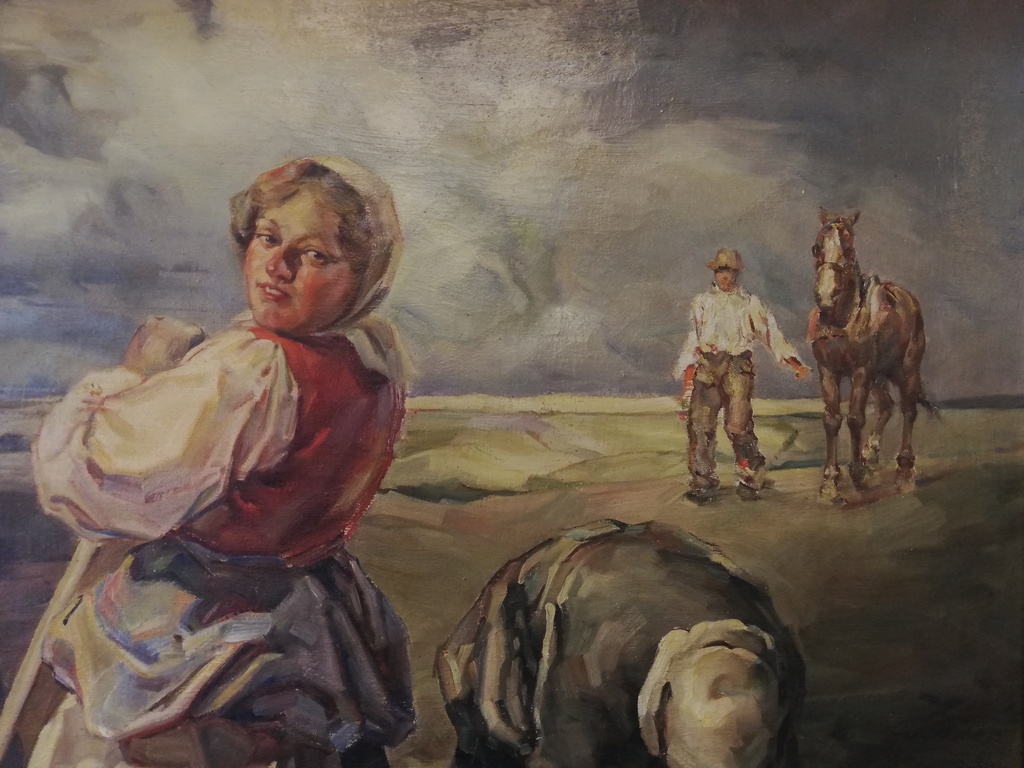 20.Jhdt. original Öl auf Leinwand, Frau auf der Weide-