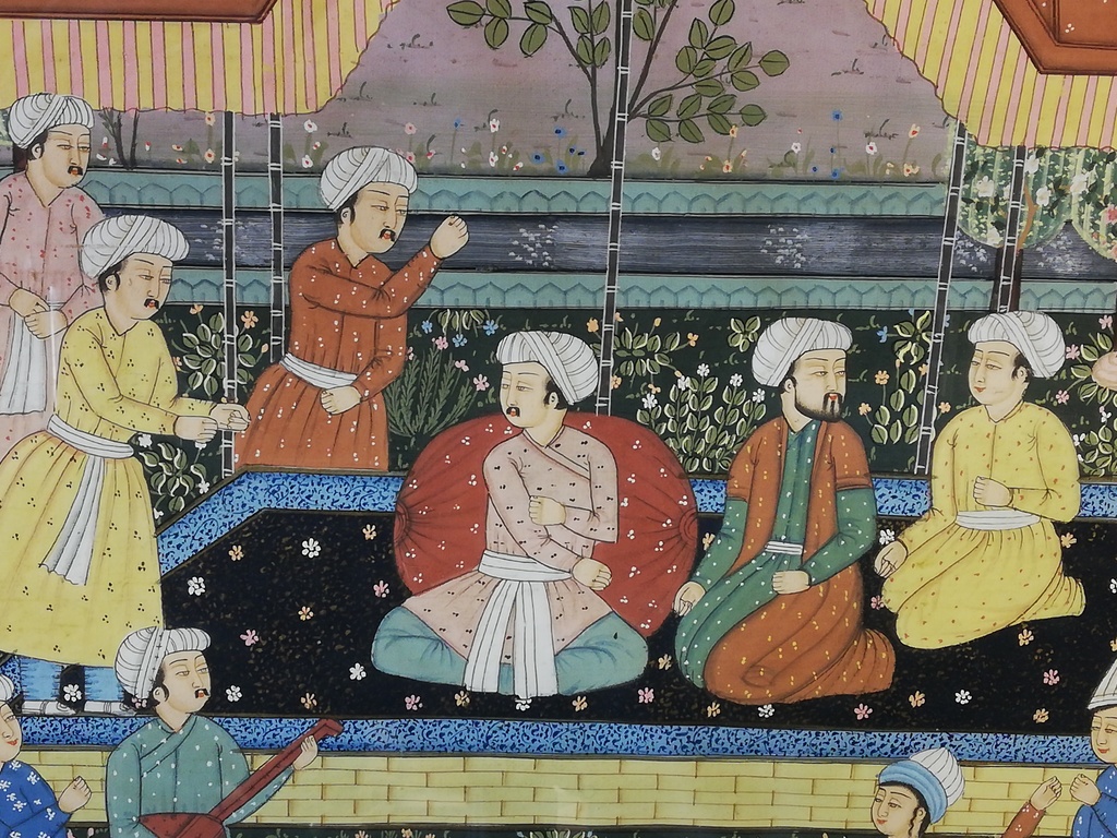 Motiv: Orientalisches Bild mit Herresch mit Gefolge in Zelten im Garten