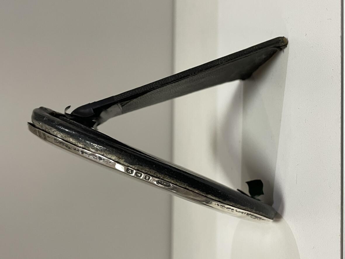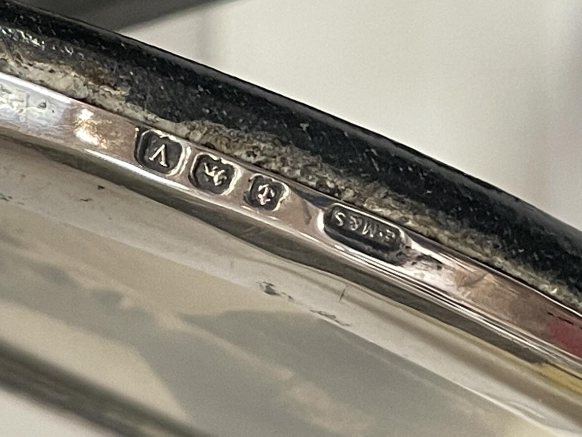 Punzen am Rand des Rahmens: ,, E.M & S " ( Meisterpunze ) Anker, nach links schreitender Löwe für engl. Sterlingsilber ( 925er ) und ,, V " jeweils in Quadrat