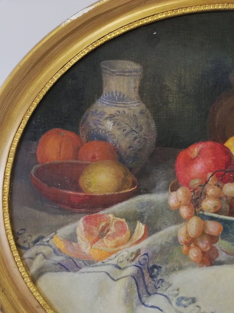 Öl auf Leinwand kaschiert auf Holz, Blattgold Rahmen
