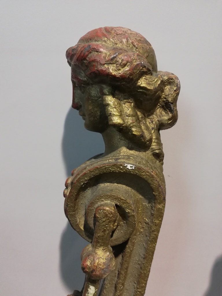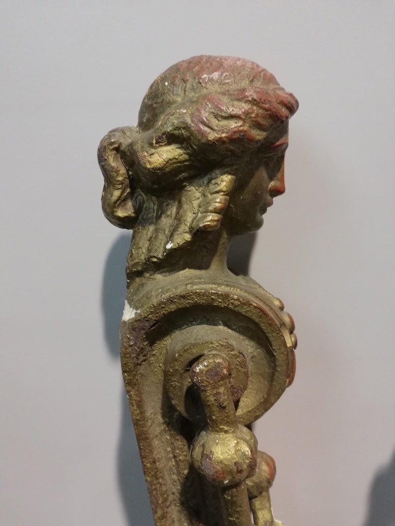 Gusseisen gemalt mit roter Rostschutzfarbe, darauf goldene Bemalung, um 1890