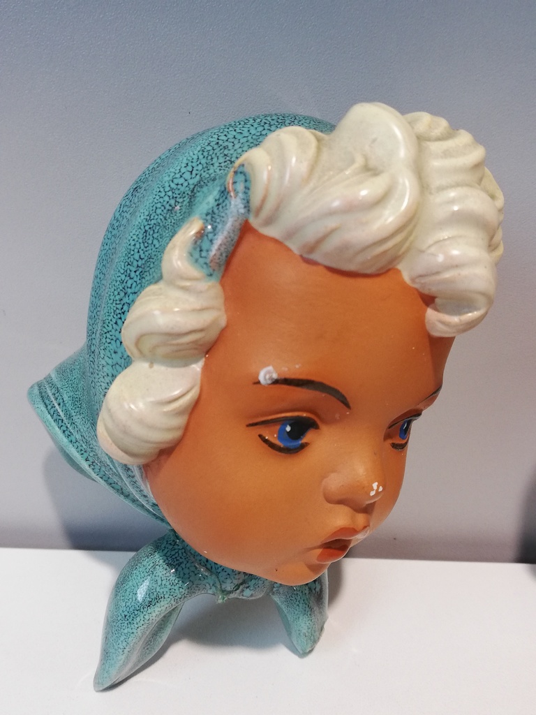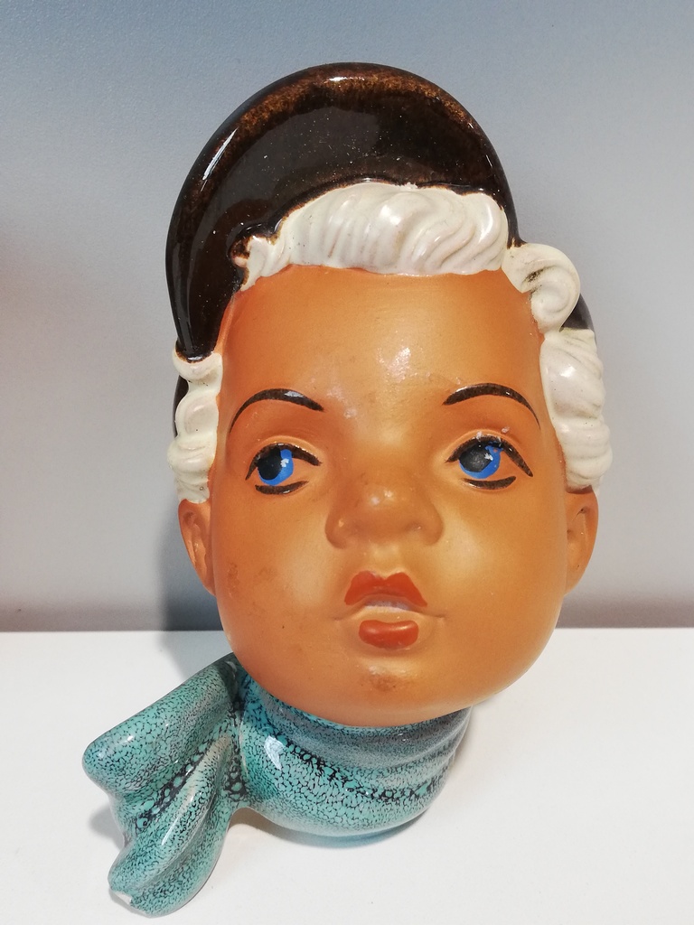 20.Jhdt. Keramik, Gesicht u. Haare matt, Rest glänzend eingespritzt Rückseitennummer: Bub ,, 116 " Mädchen ,, 115 "
