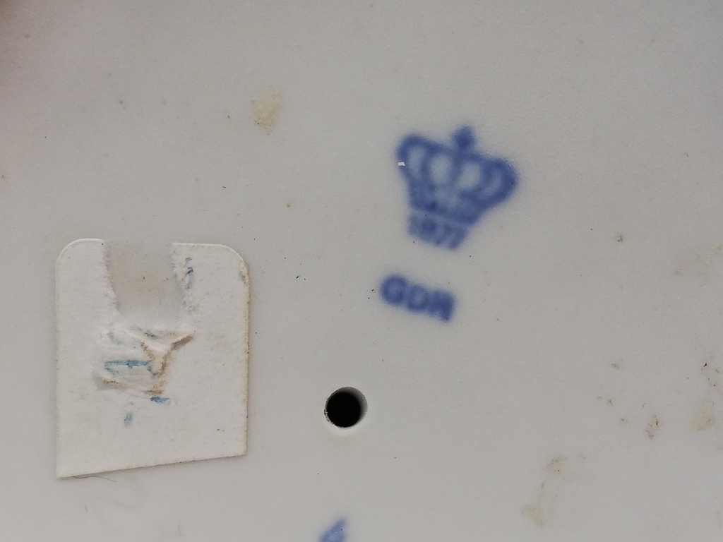 Marke: unterglasurblau aufgedrückt: Krone darunter ,, GRD " ( =German Demokratic Republic = DDR ) u. ,, 4 " blind eingepresst am Boden ,, 12190 "