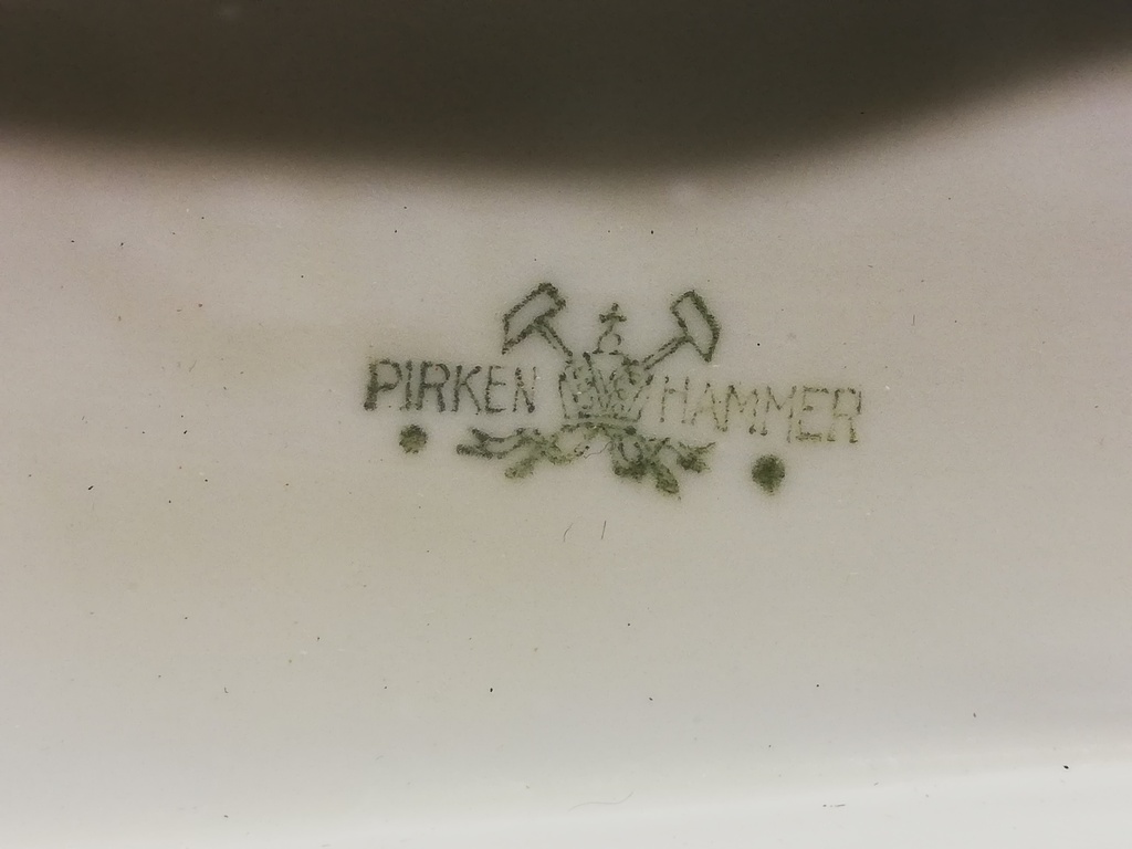 unterglasurgrün aufgestempelte Marke an Unterseite ,, PIRKENHAMMER "