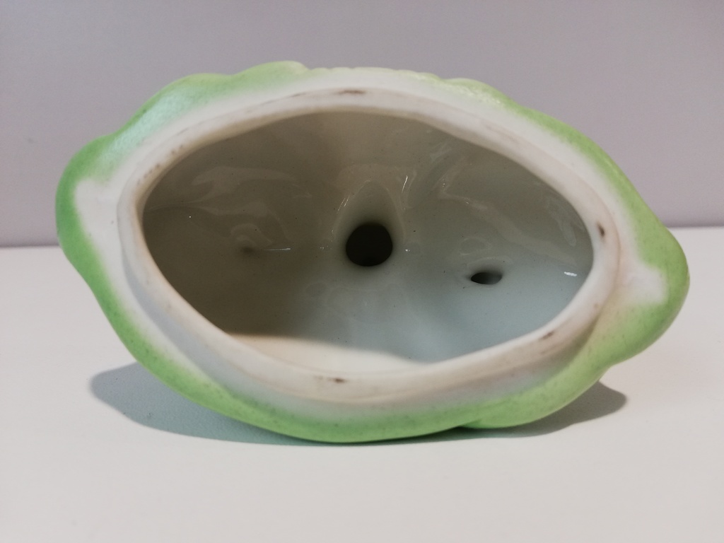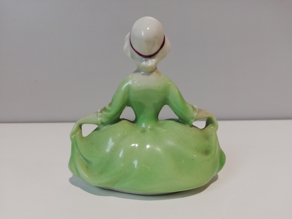 20.Jhdt. Puppe hebt mit beinten Händen Kleid, Kleid grün