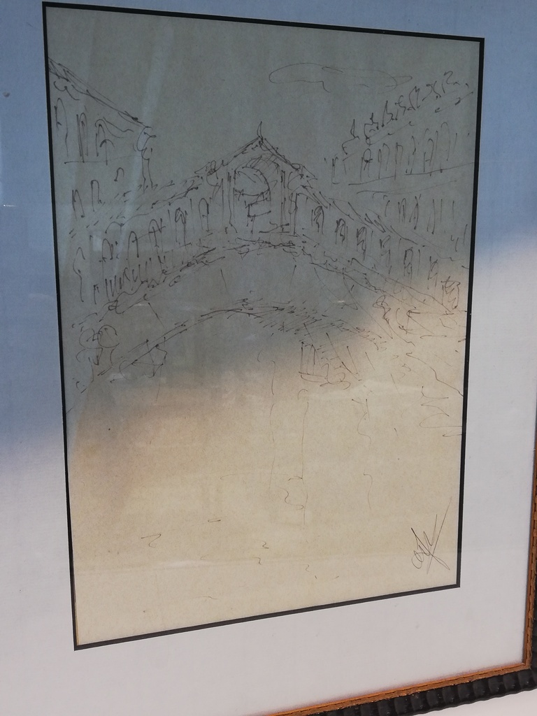 Originale Tuschzeichnung, Passepartout, Zustand gut