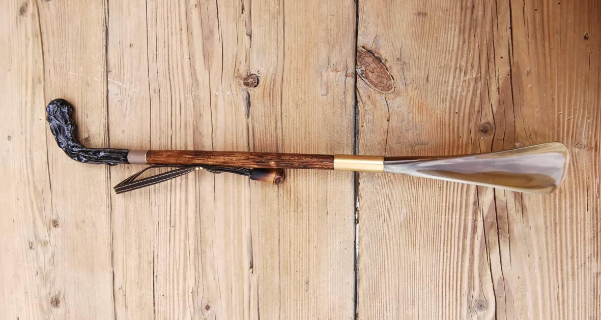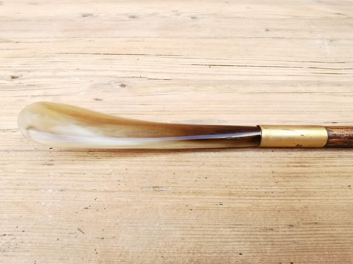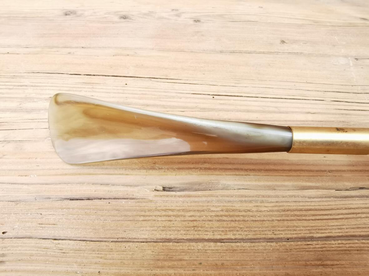 Löffelteil vermutlich aus Horn, Griff aus Kunststoffmaterial.
