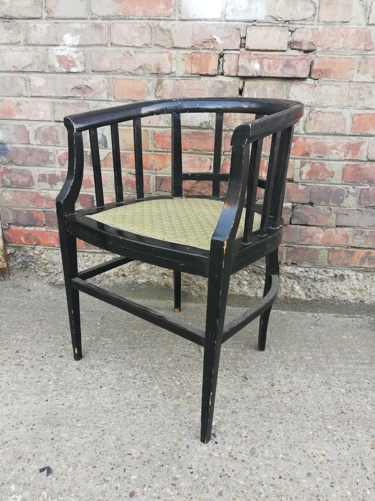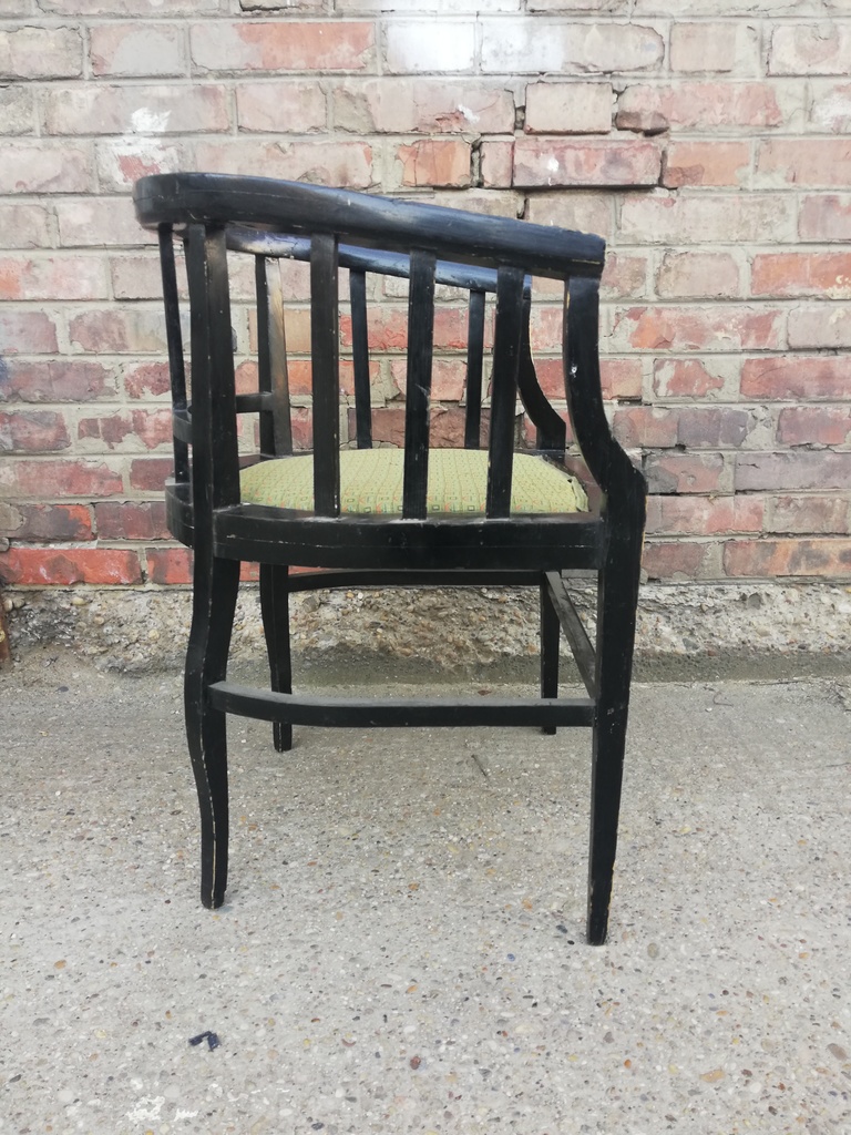 um 1900- 1910 , Jugendstilsessel mit grünem Quadratstoff mit Armlehnen, schwarz Schellack politiert, Holz, hellgrüner Stoff,